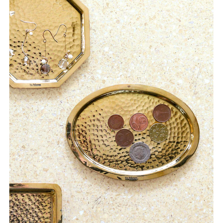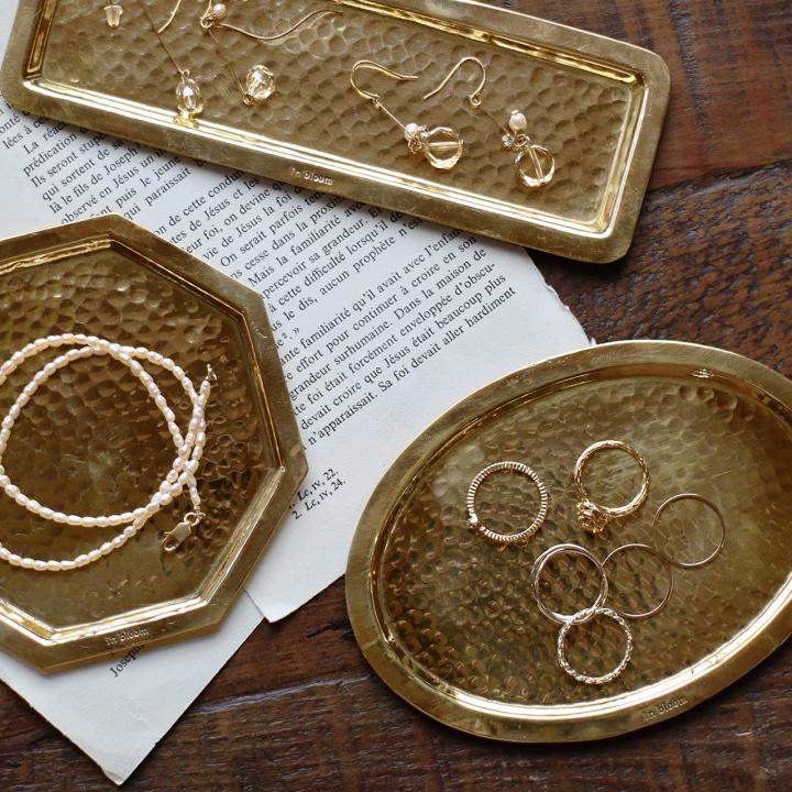 アクセサリーや小物の収納・ディスプレイや小物置きに丁度良いハンマートーン仕上げの真鍮トレイ。