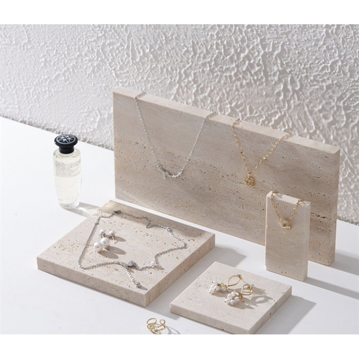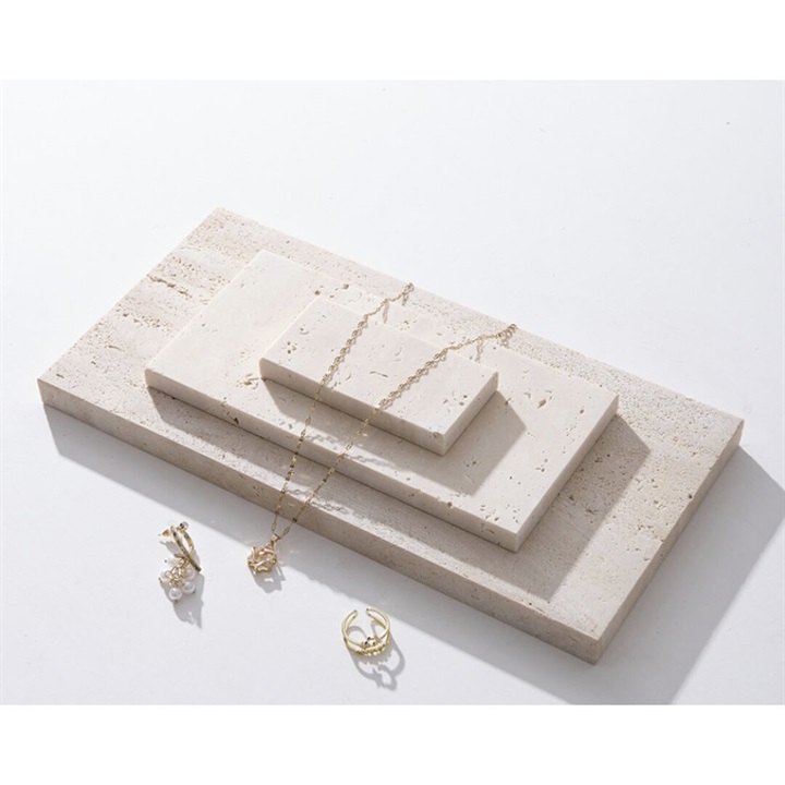 自然な風合いと優しい色合いが魅力のトラバーチンという石材のプレートです。複数のサイズを組み合わせてアクセサリーをディスプレイしたり、グリーンとのコーディネートもオススメ。使い方は自由自在!アイデア次第で、もっと魅力的になるところがポイントです。空間を一新して、上質な雰囲気を作り出してくれます。 ▼プレゼント用のラッピングバッグはこちら