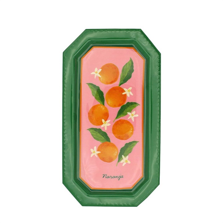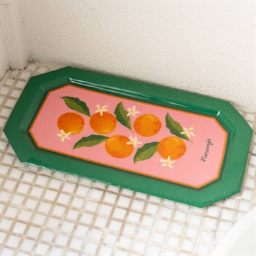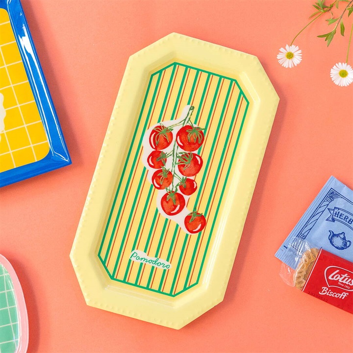 南欧をイメージしたポップな配色とモチーフが目を引く、レクタングルのアイアントレイ。アクセサリーや鍵、コインなどの小物トレイとしてはもちろん、デスク周りや玄関の整理アイテムとしても活躍します。裏面にはクッションが付いているので、滑りにくく、傷も防いでくれるので安心です。