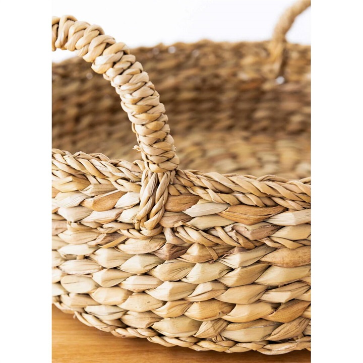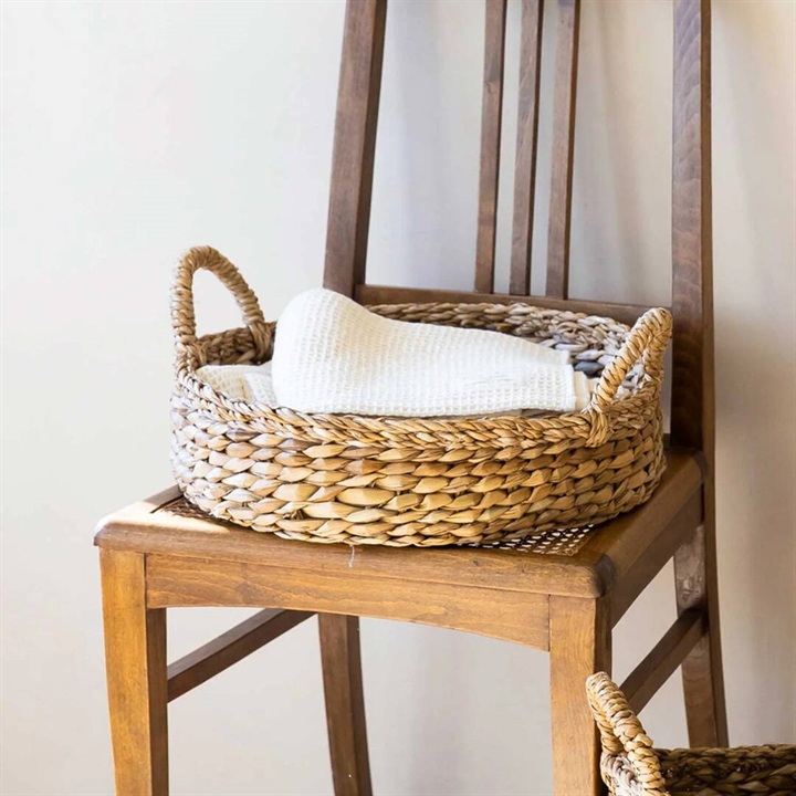 ナチュラルな風合いのホグラのトレイ。持ちやすいハンドルがついているので、移動も楽にできます。少しヘリが高めの仕様なので、見せる収納にぴったり!ランドリーアイテムやキッチン雑貨を収納したり、大きな観葉植物の鉢カバーにもおすすめです。