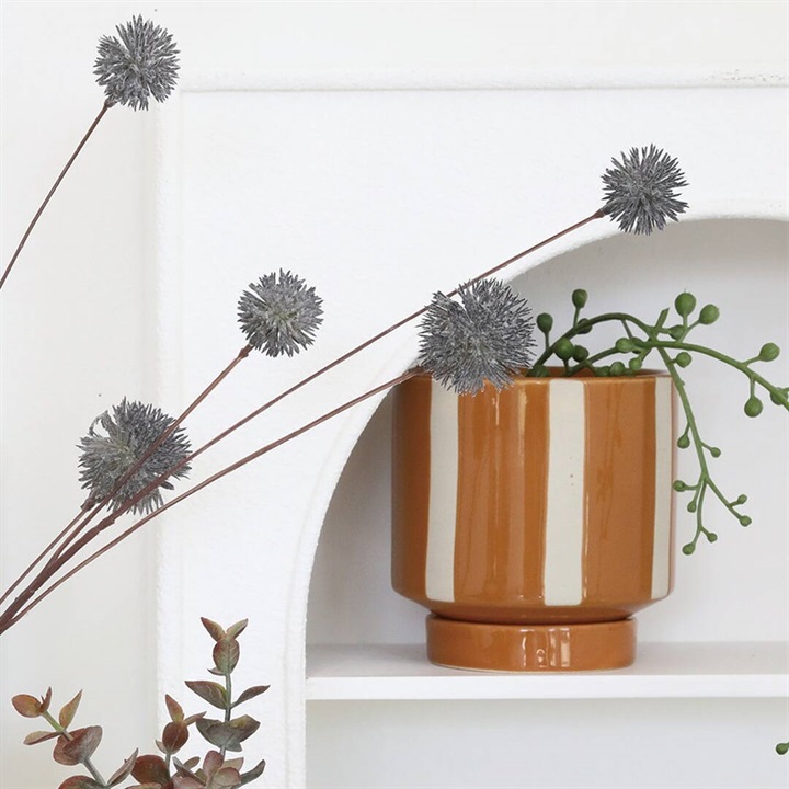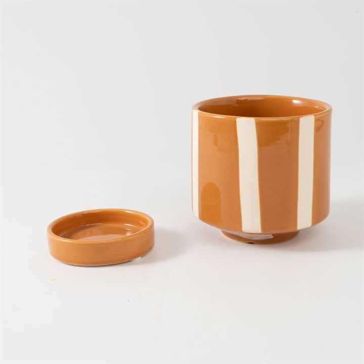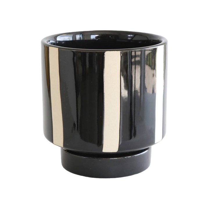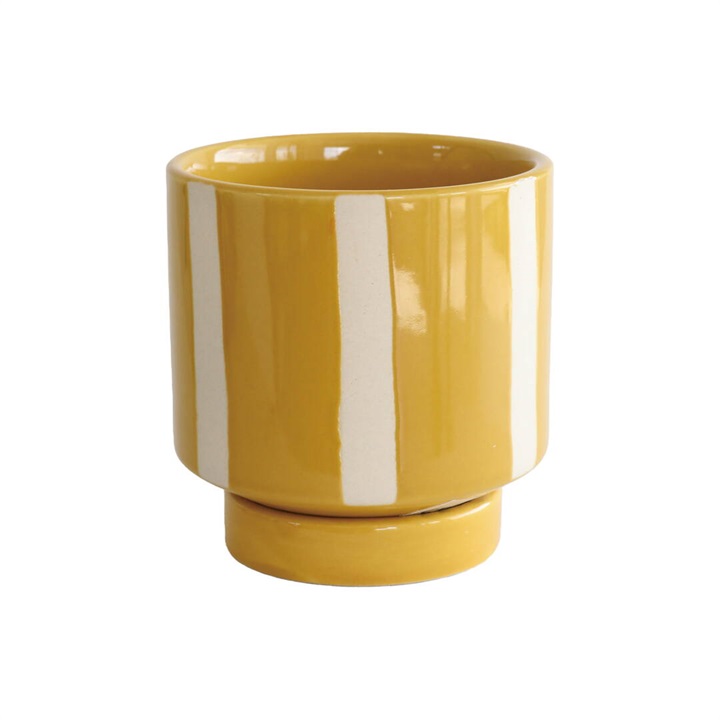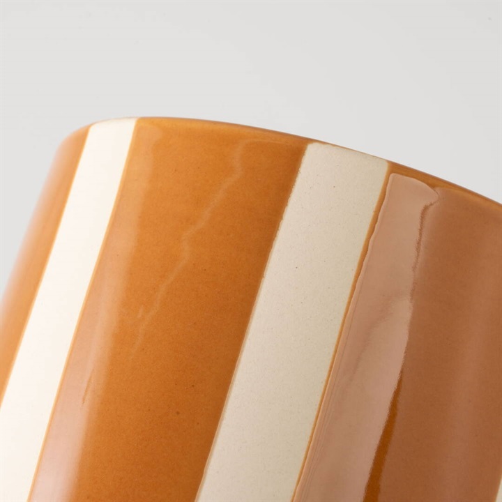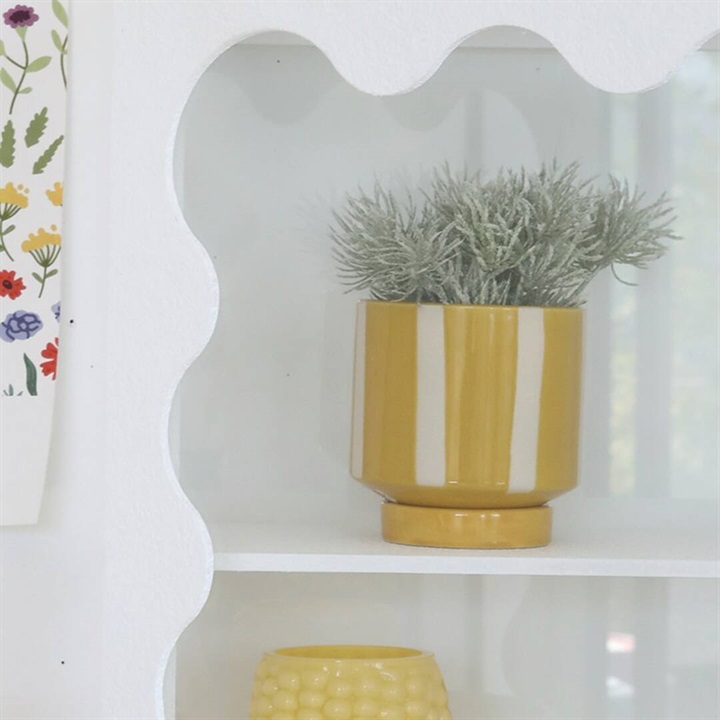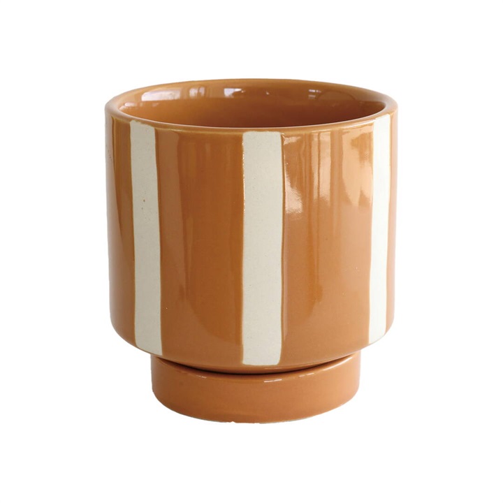 落ち着きのあるカラーが、植物を引き立てるグリーンポット。クラフト感のあるラフに描かれたストライプがお部屋に抜け感を与えてくれます。ソーサー付きなのですぐにお使いいただけます。模様替えにもぴったりなアイテム!