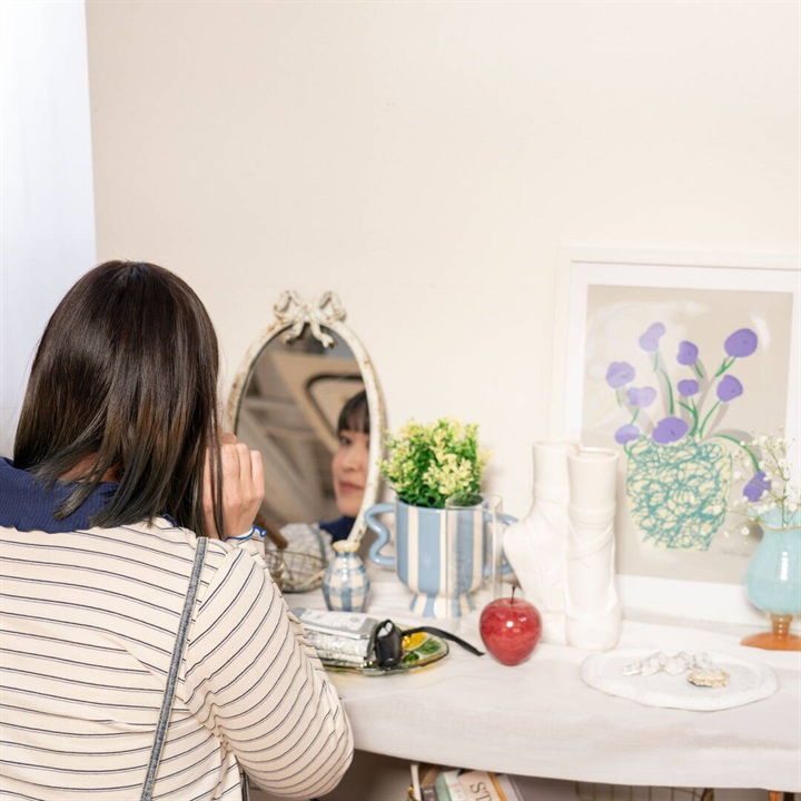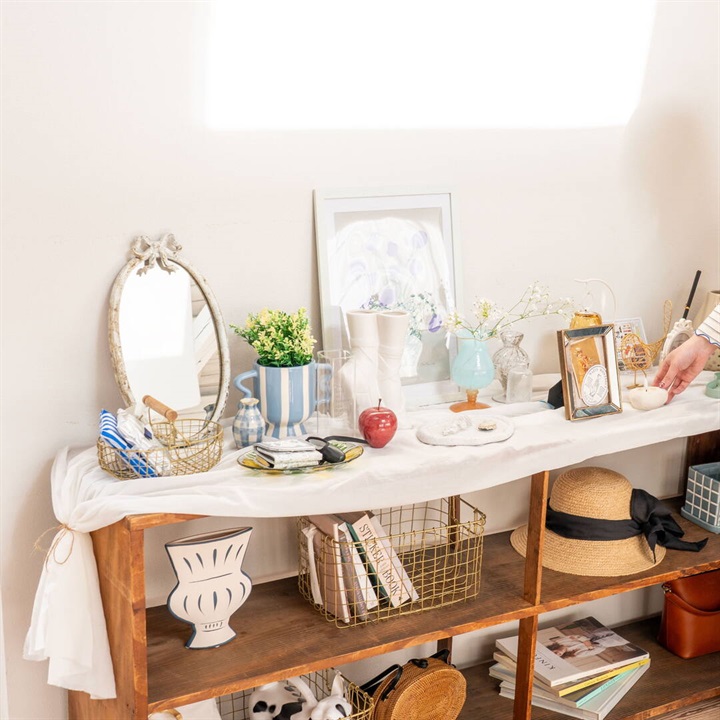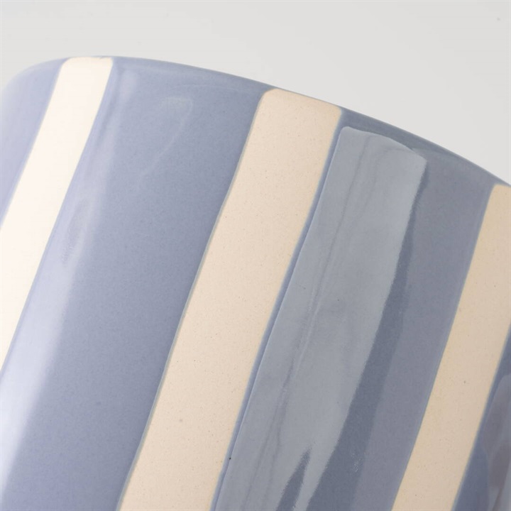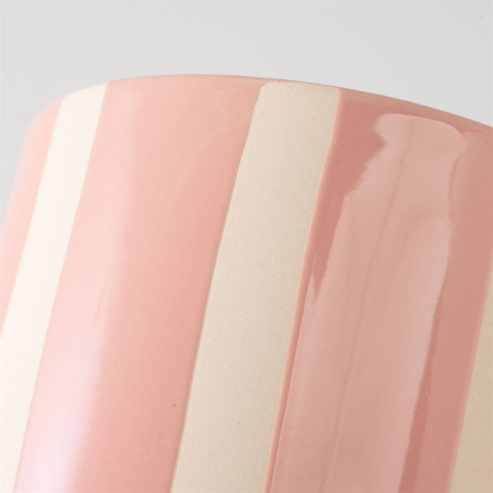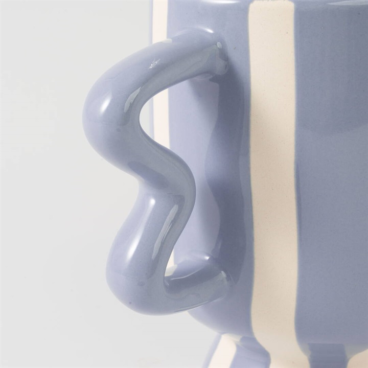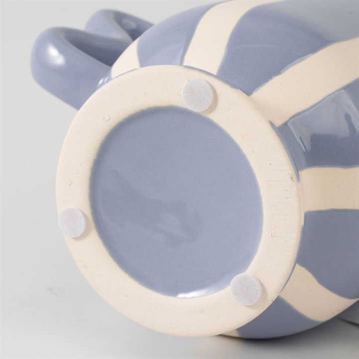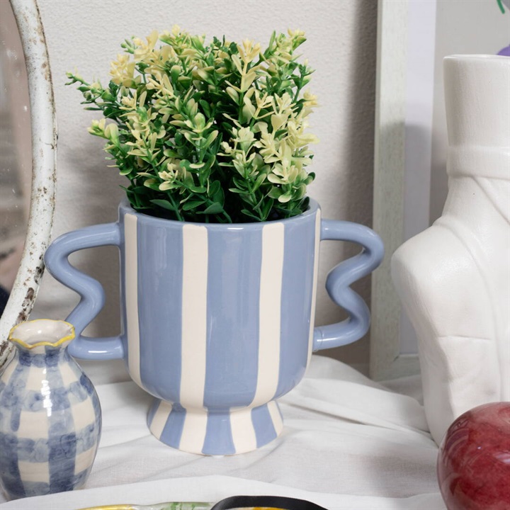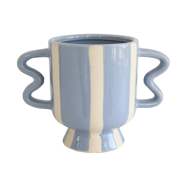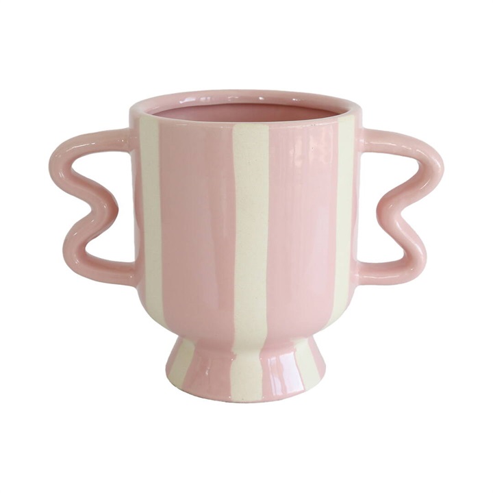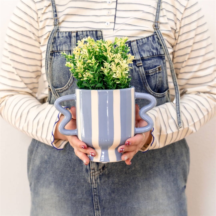 個性的なフォルムが目を惹くグリーンポットカバー。持ち手のような波打つデザインがアートピースのようで、オブジェとしても使いたくなります。クラフト感のあるラフなストライプが可愛いです。模様替えにもぴったりなアイテム。