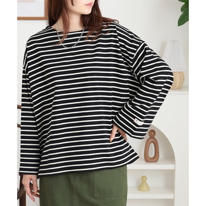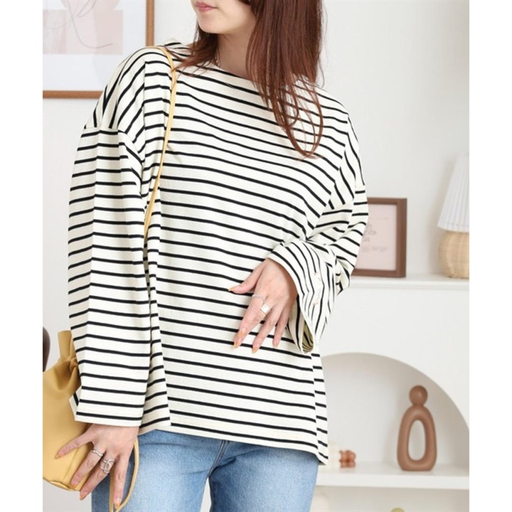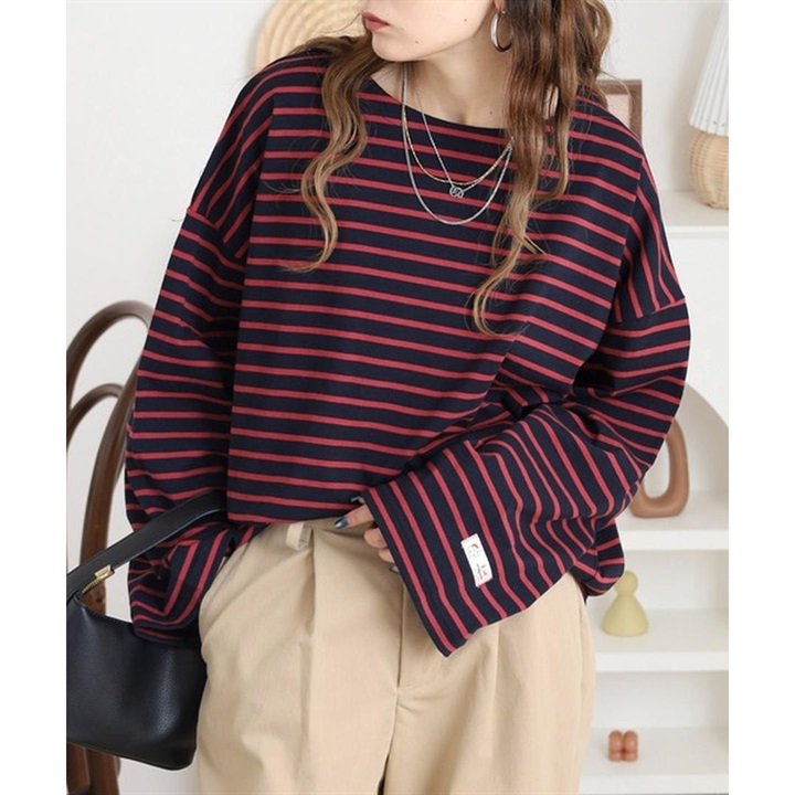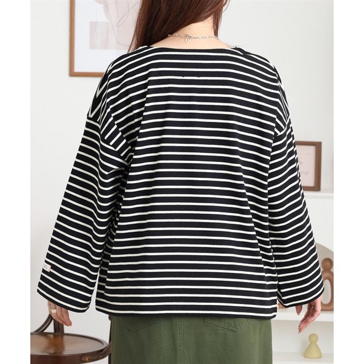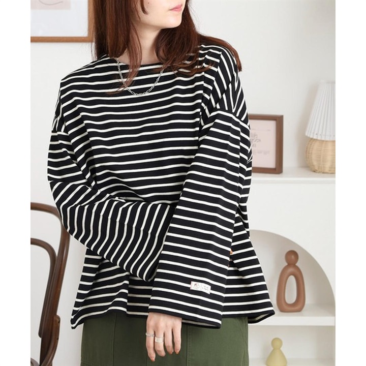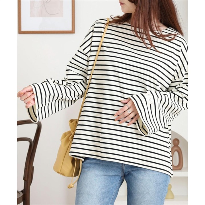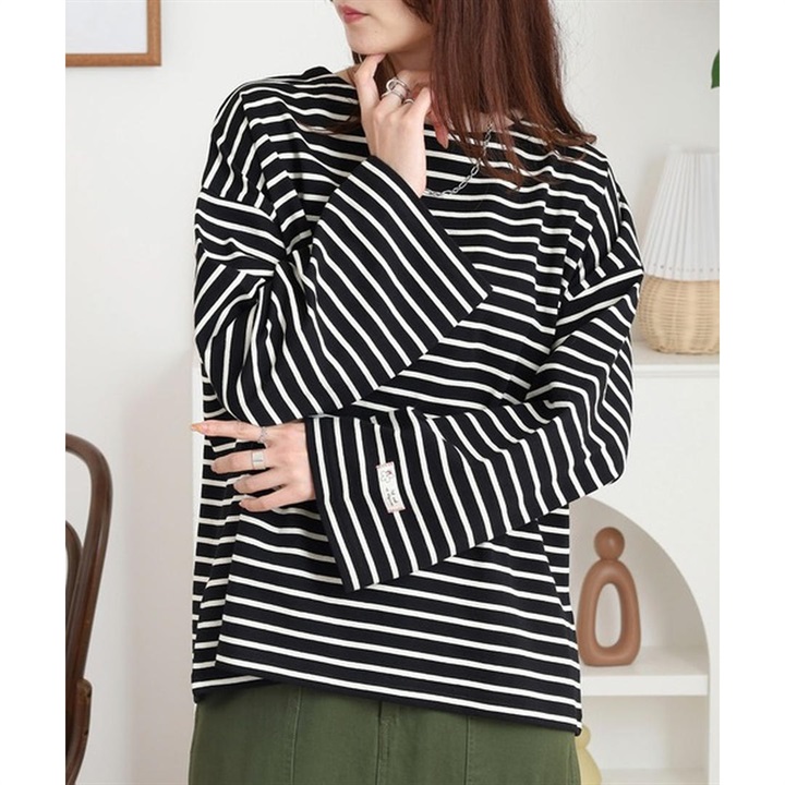 【Arinomama】長袖ボーダーオーバースリーブTシャツ