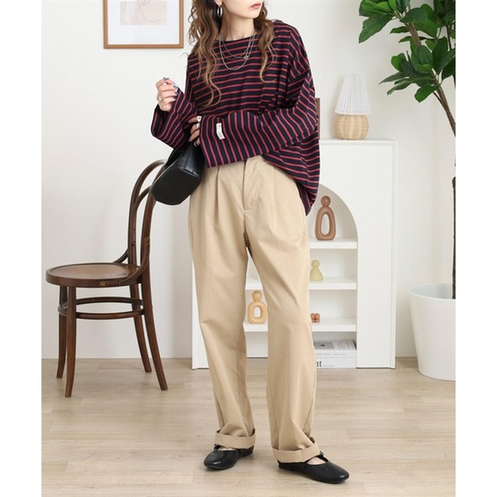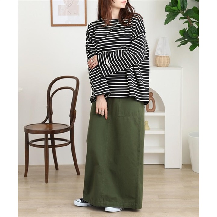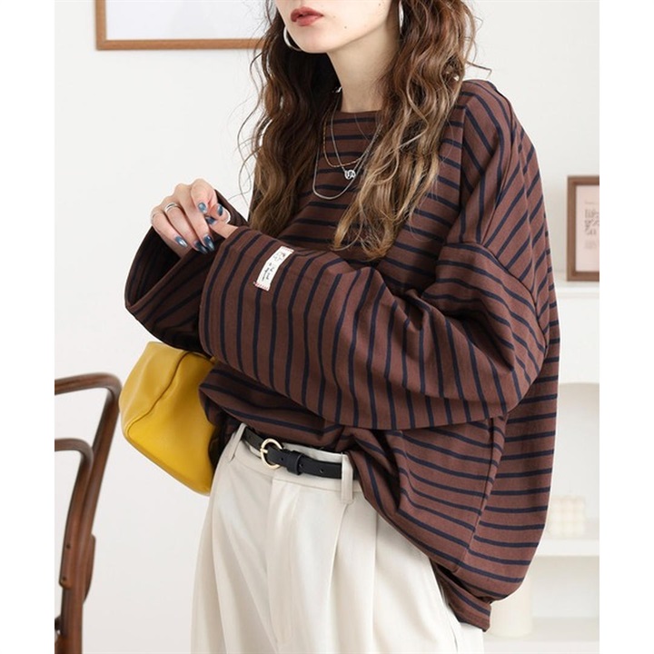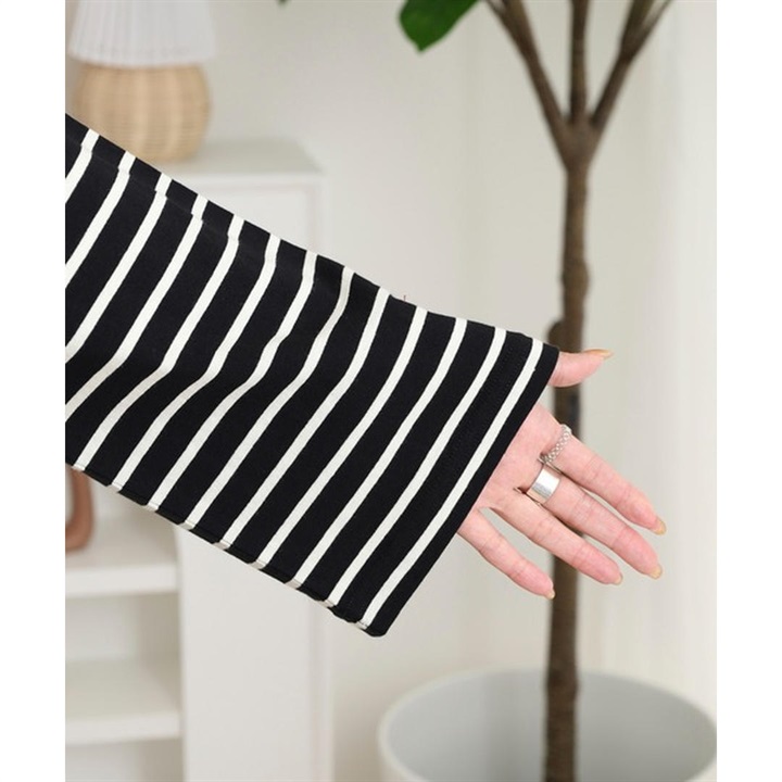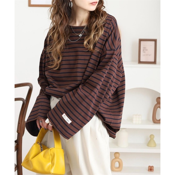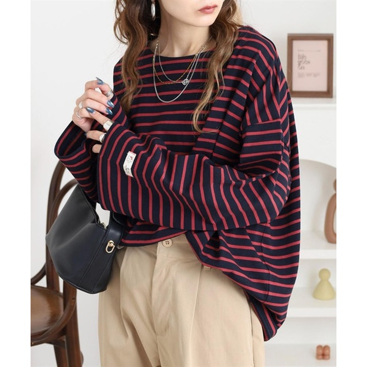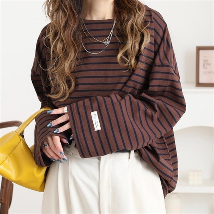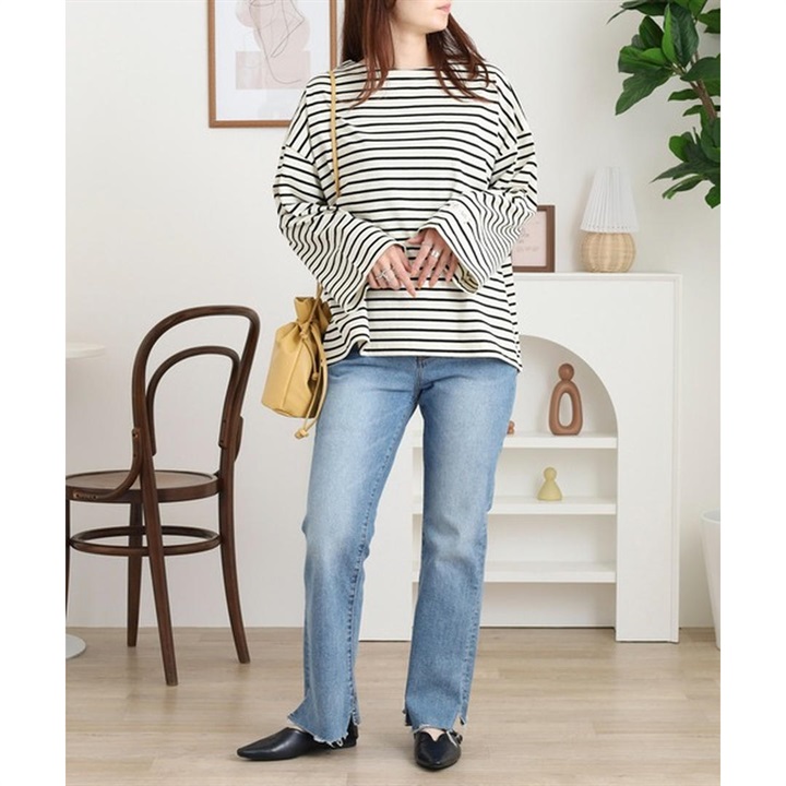 【Arinomama】長袖ボーダーオーバースリーブTシャツ