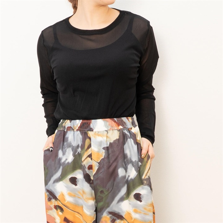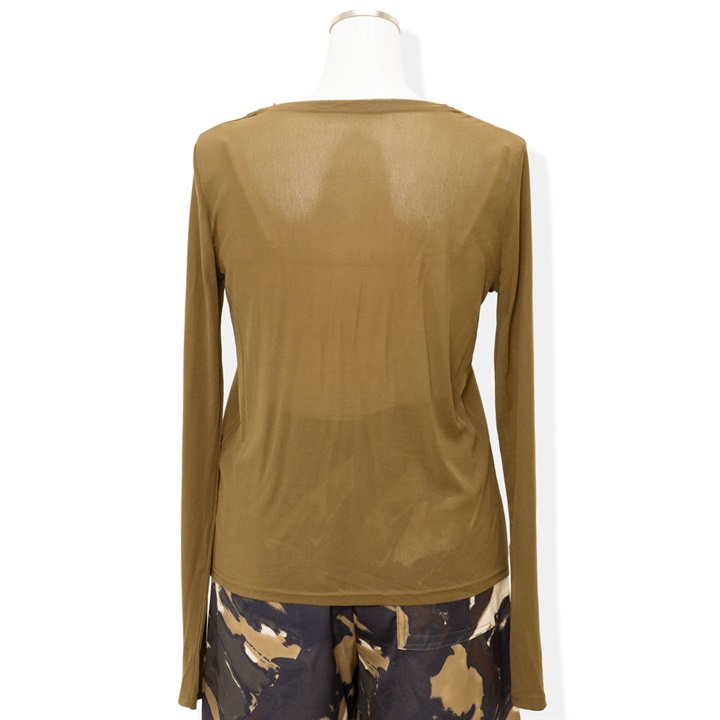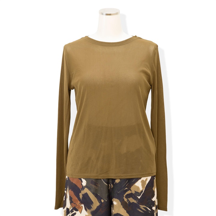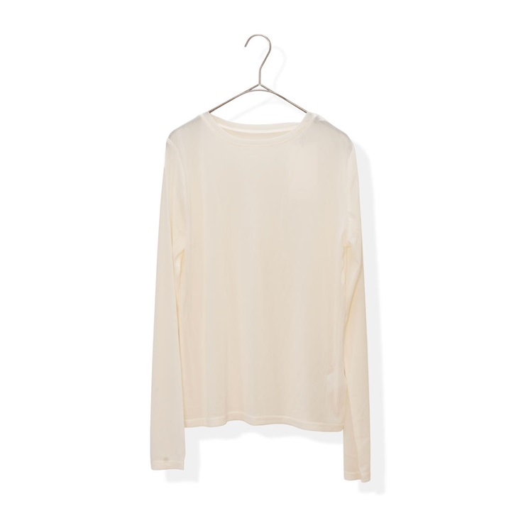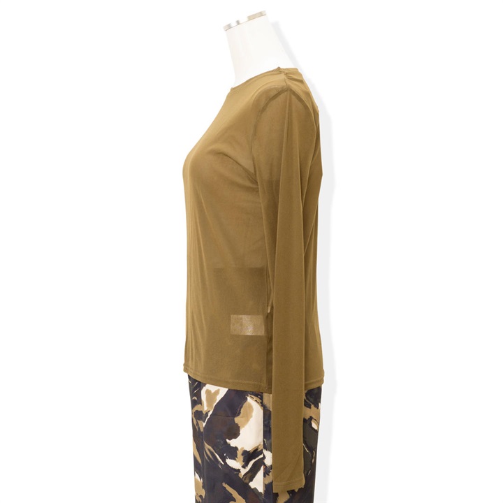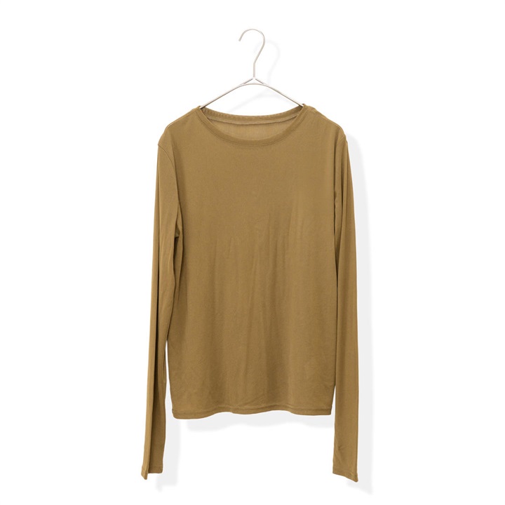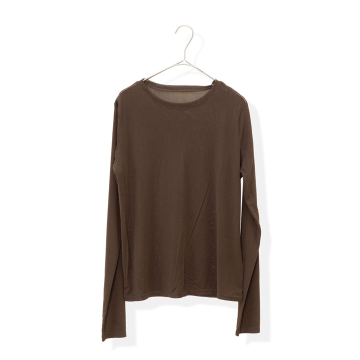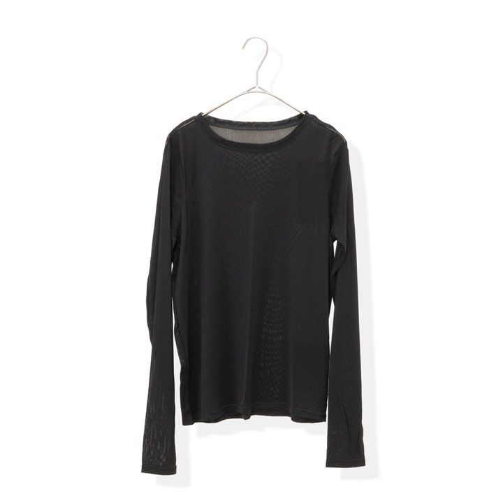 ほんのり透け感のあるシアーな生地が今年らしく、1枚でもレイヤードでもサマになる優秀アイテム。
