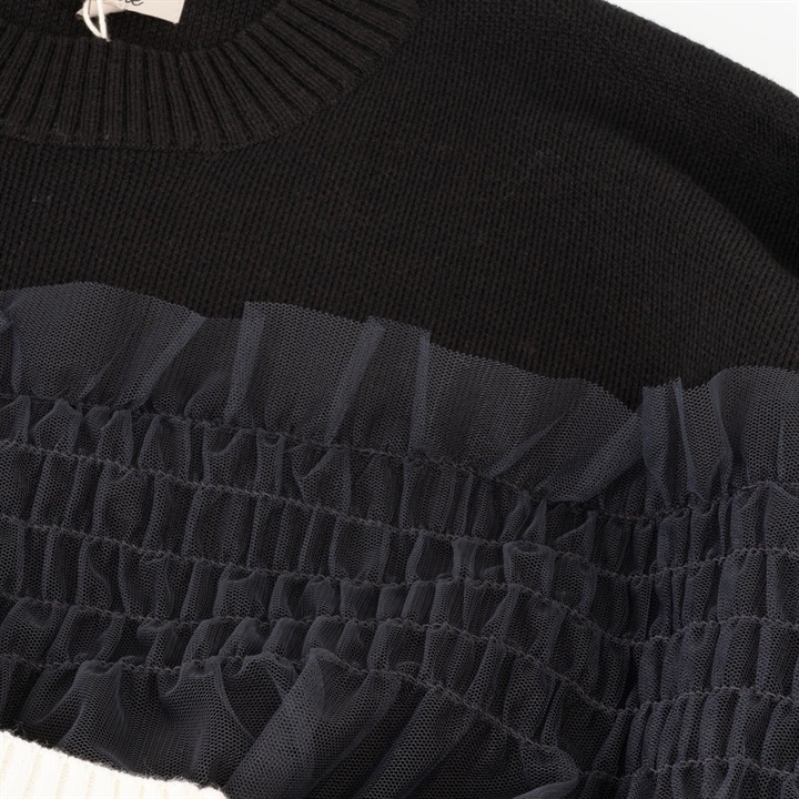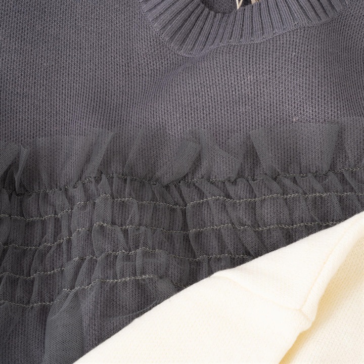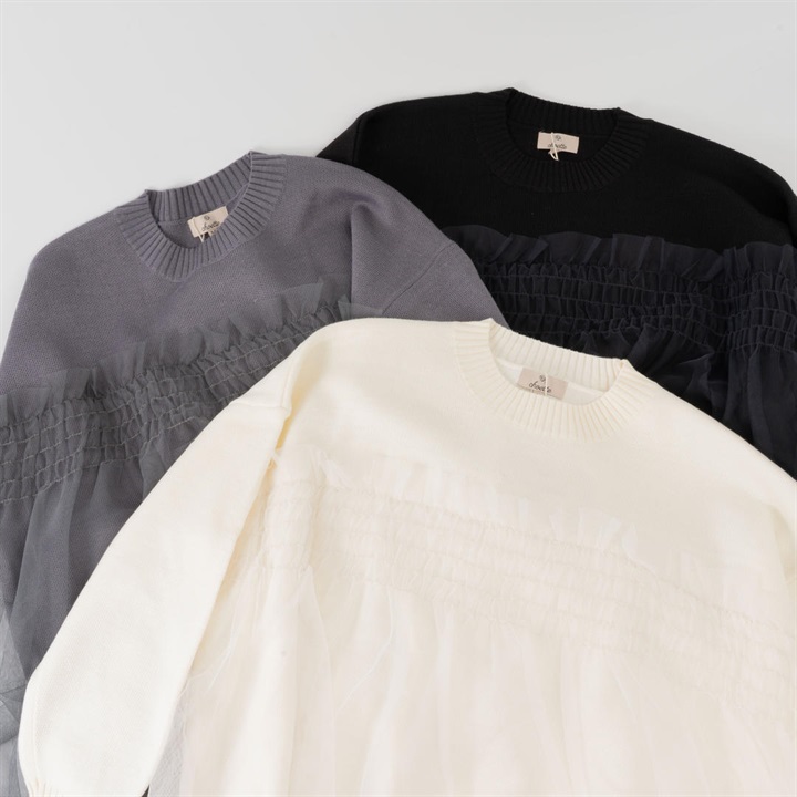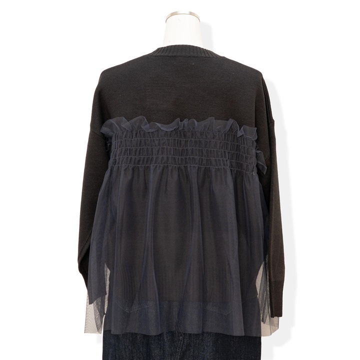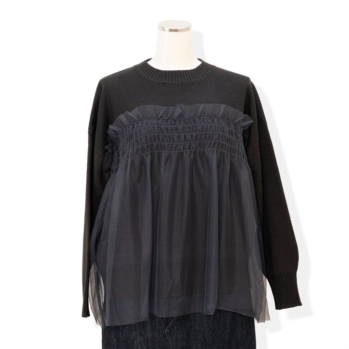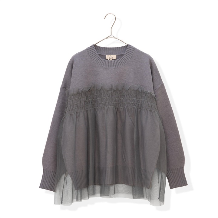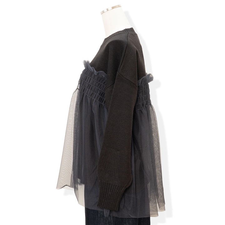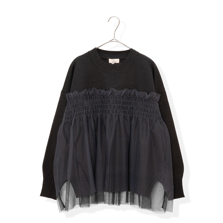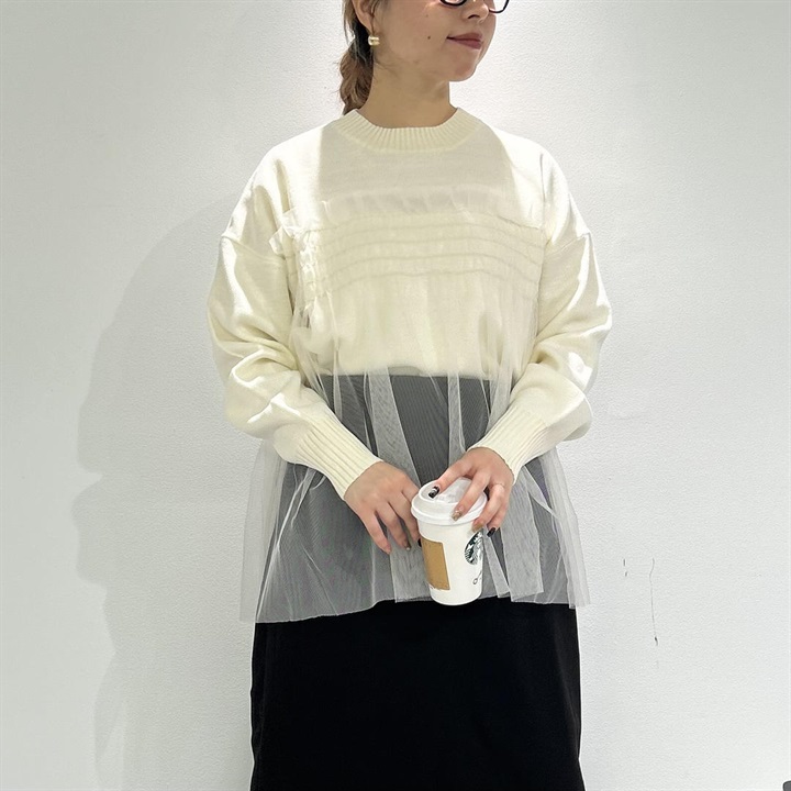 【choette】チュール切替長袖ニットプルオーバー