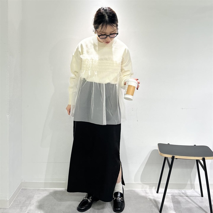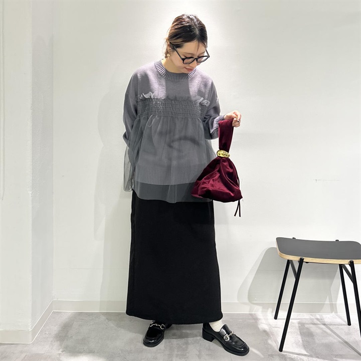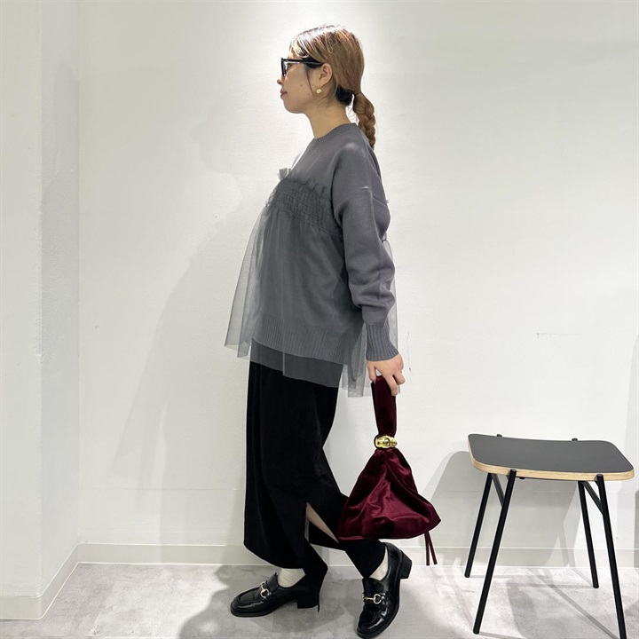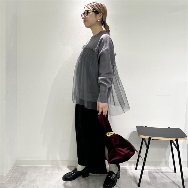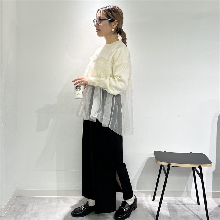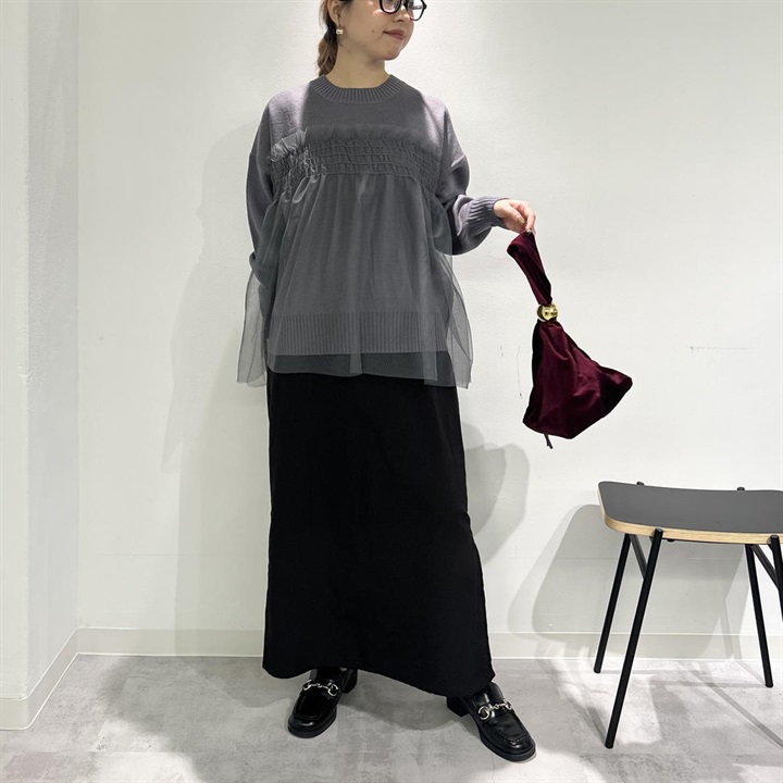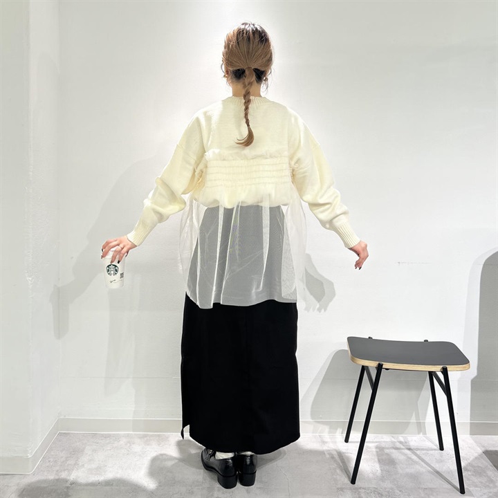 ニットの上品さプラス透け感チュールの華やかさが魅力の一点。どんなボトムスとも相性が良く、女性らしいデザインとシルエットが雰囲気を高めてくれます。お家で洗濯可能なのでお手入れが簡単なのも嬉しいポイントです◎中のニットだけをボトムスにインしたり、チュニックっぽくさらっと着たり、様々な着こなしが叶います♪この冬、デイリー使いにいかがでしょうか。着用モデル身長153cm(骨格ストレート)です。 ▼プレゼント用のラッピングバッグはこちら