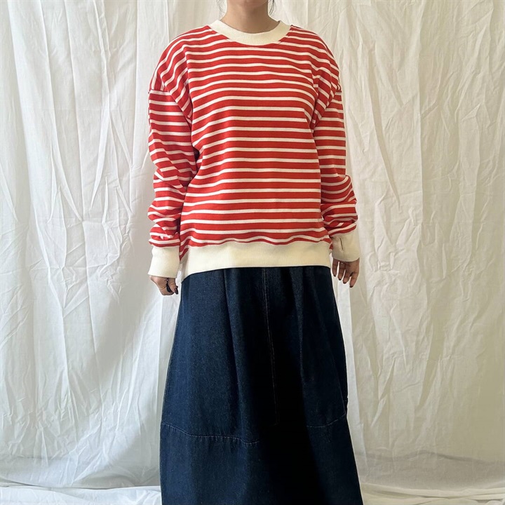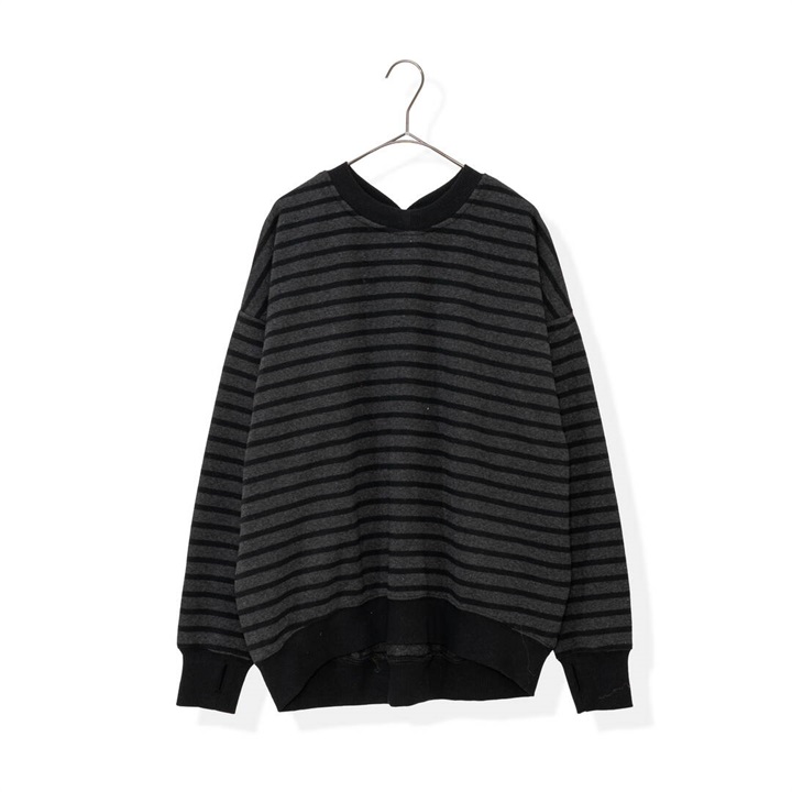 【PAGE ONE】CVC裏起毛 ボーダー柄 バックジップアップ 長袖スウェット