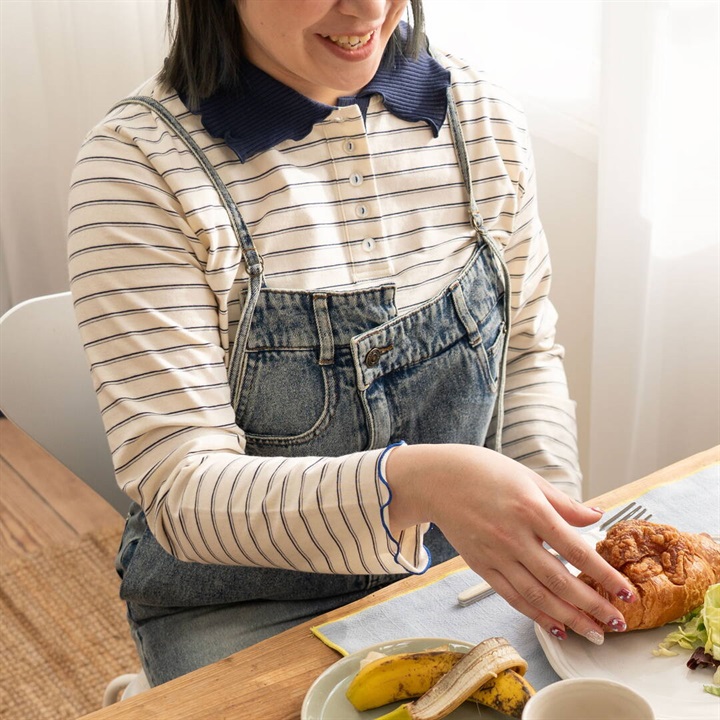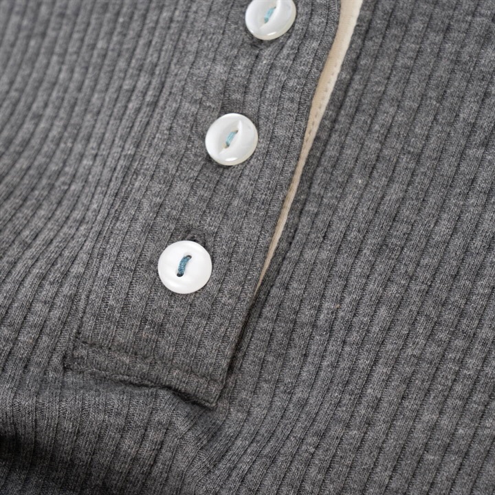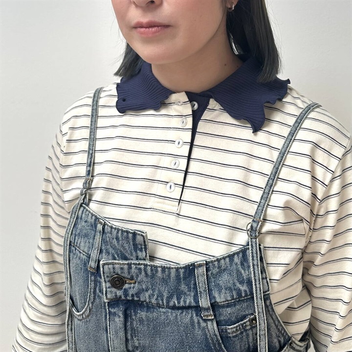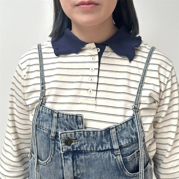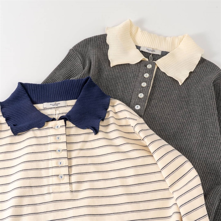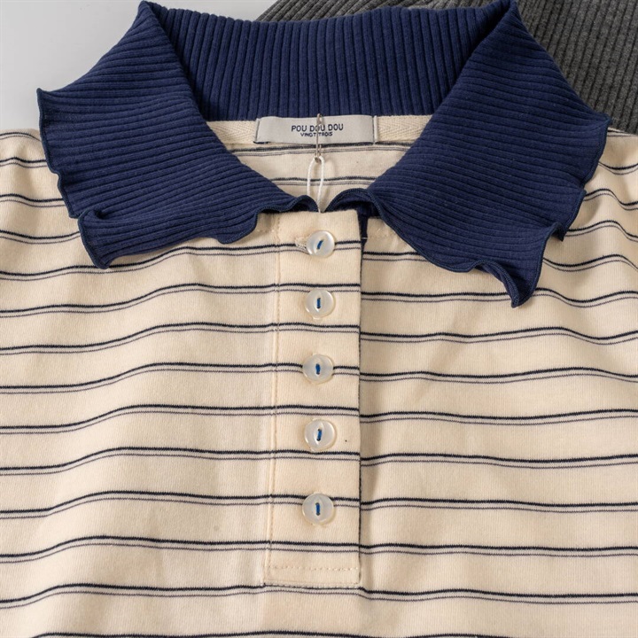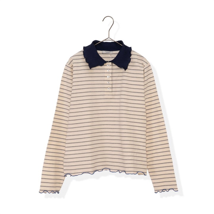 【POU DOU DOU】並びボタン配色衿ボーダー柄 長袖カットソー