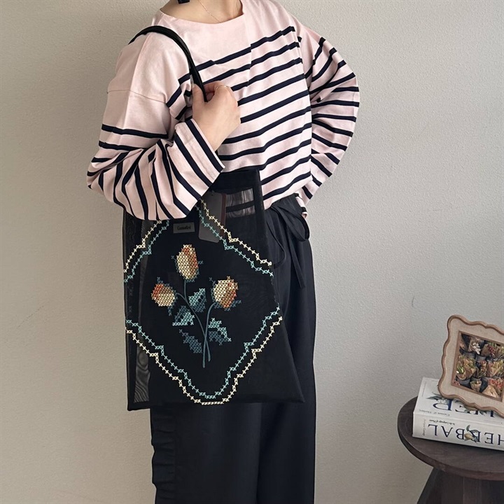 【POU DOU DOU】先染めパネルボーダー 長袖カットソー