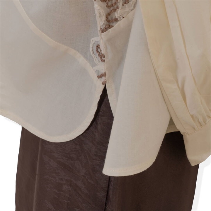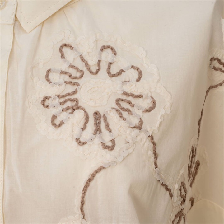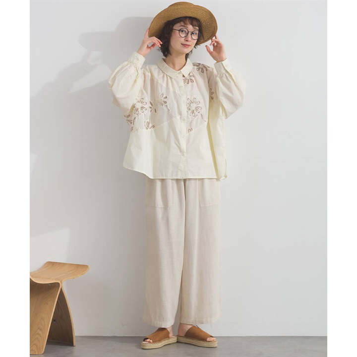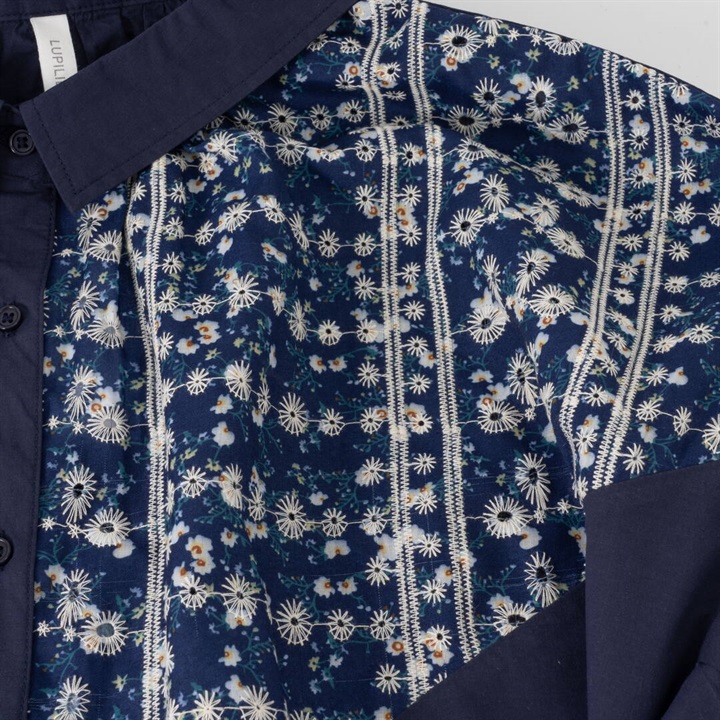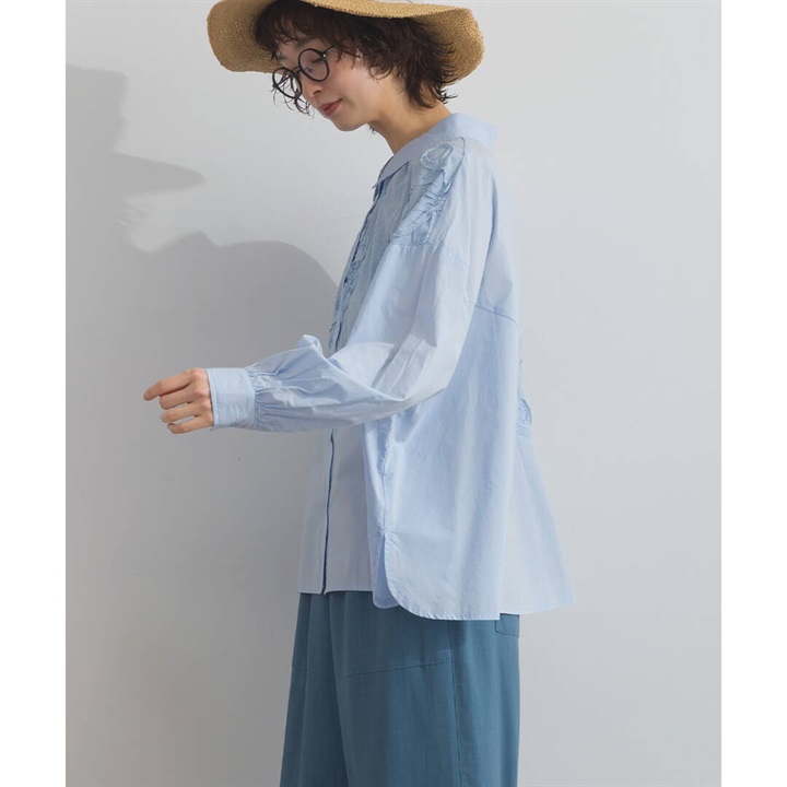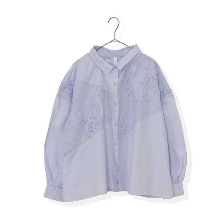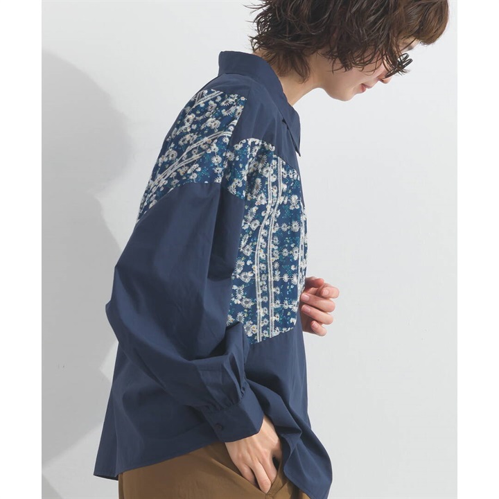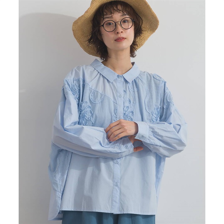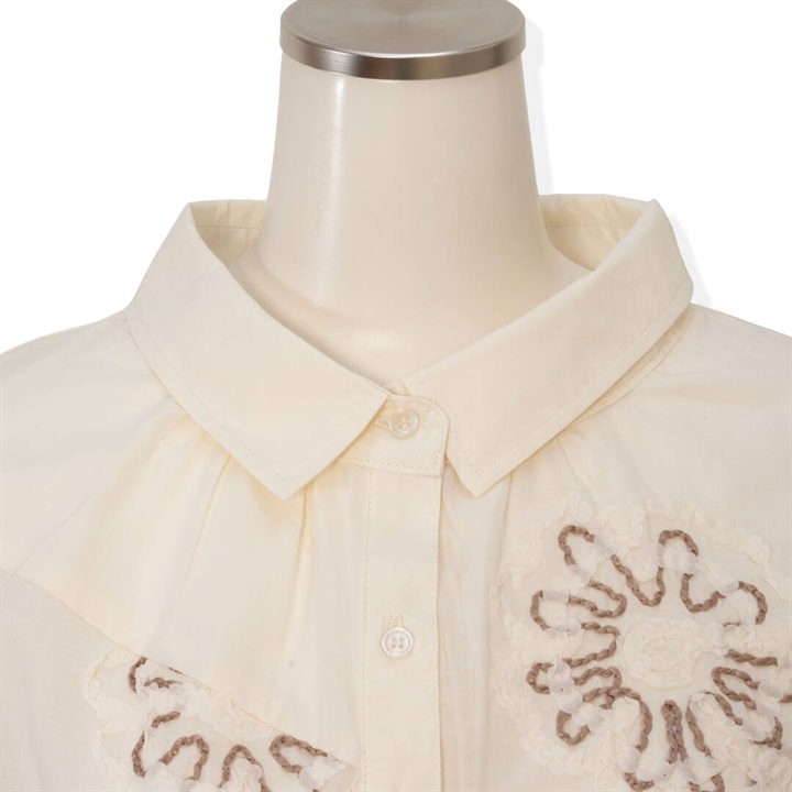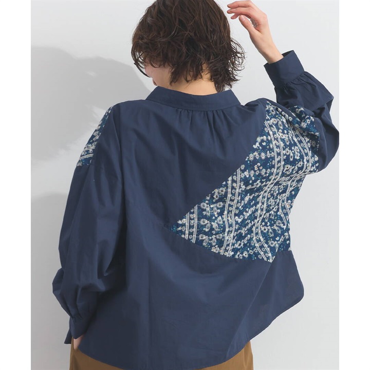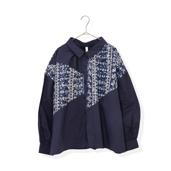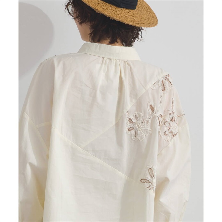 【Lupilien】フラワーモチーフパッチワーク 前開き 長袖シャツ