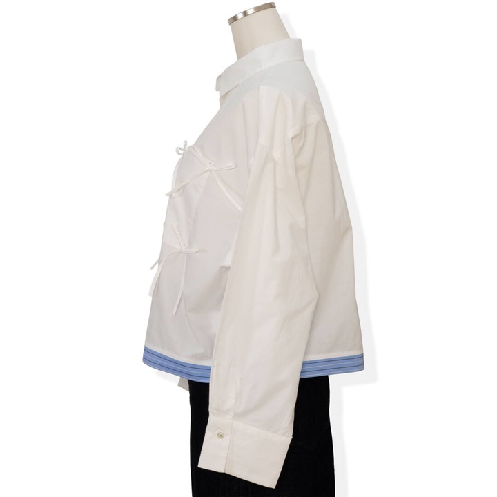 【POU DOU DOU】長袖シャツ ダブルヘムmany manyリボン 前開き