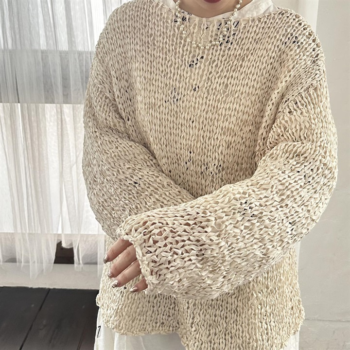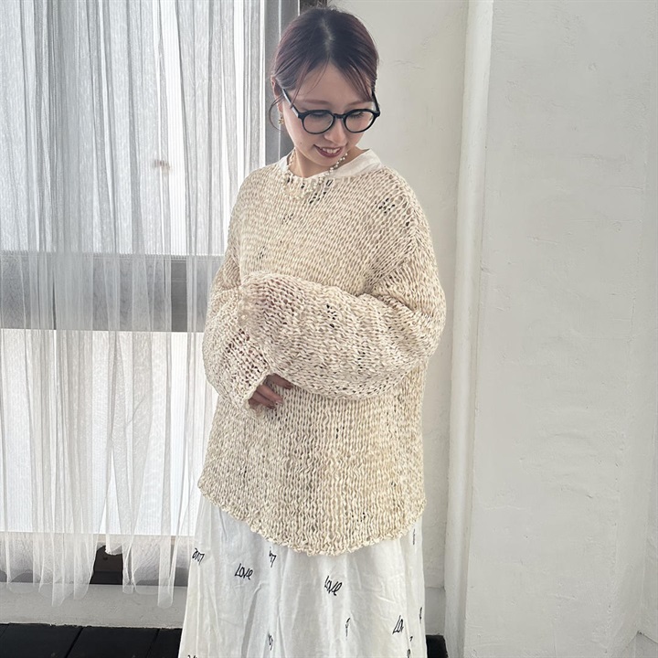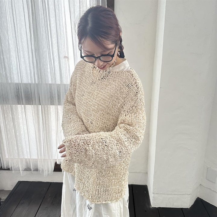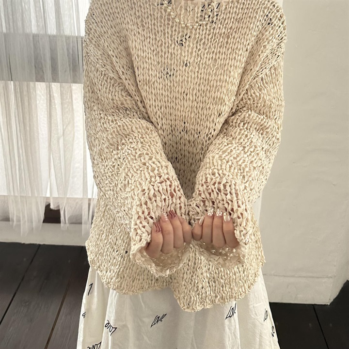 透かし編みの上品な透け感が大人の印象を演出してくれるプルオーバー。