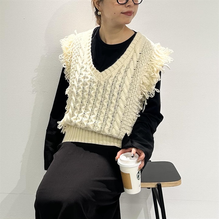 【choette】フリンジニットベスト