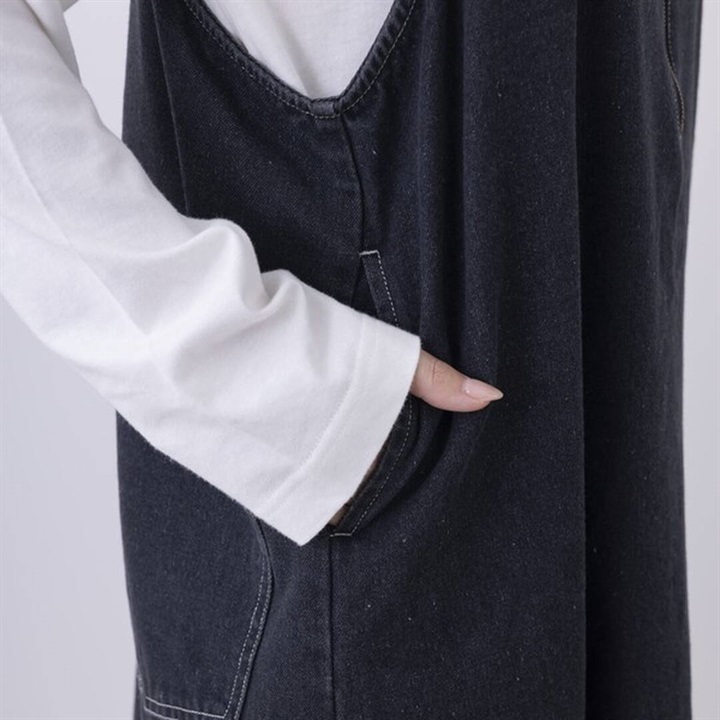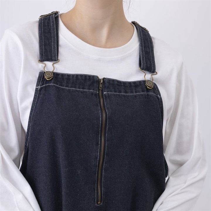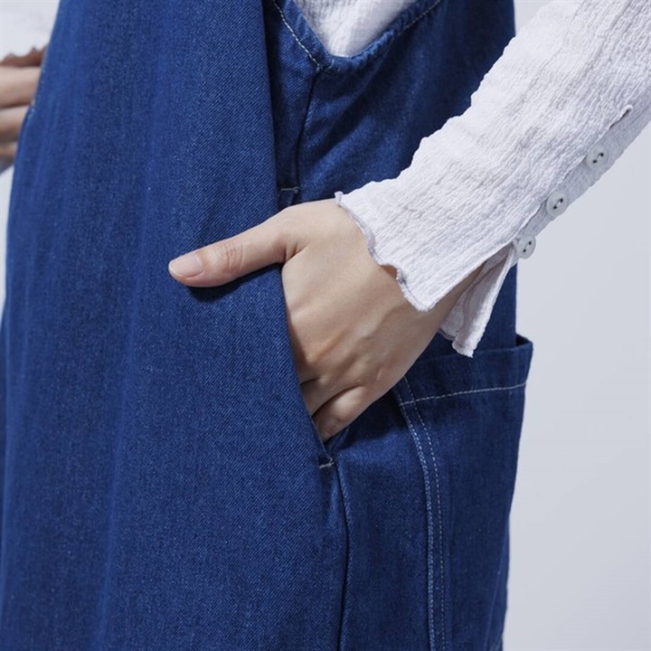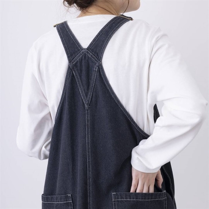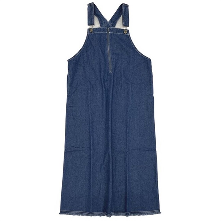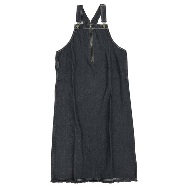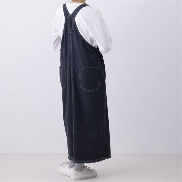 体のラインを拾わないラインシルエットのデニムジャンスカ。シンプルながらもフロントのファスナーや裾のフリンジがさりげないアクセントに。肩紐で長さ調節ができるので幅広い世代の方に着ていただけます。合わせるトップス次第でオールシーズン着回せる万能アイテムです。