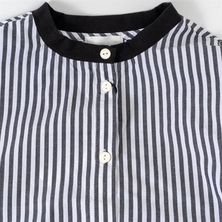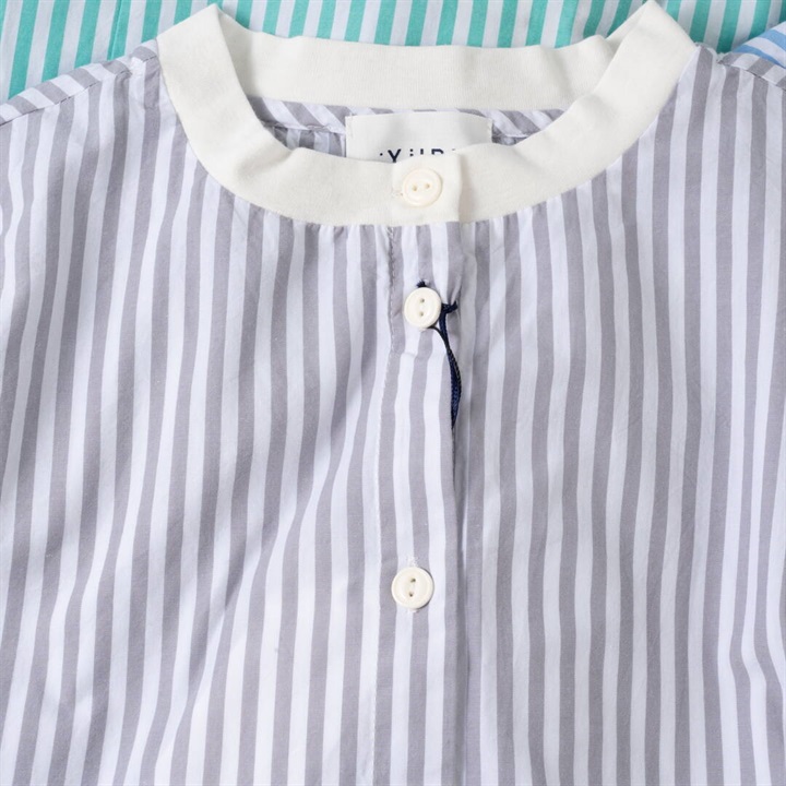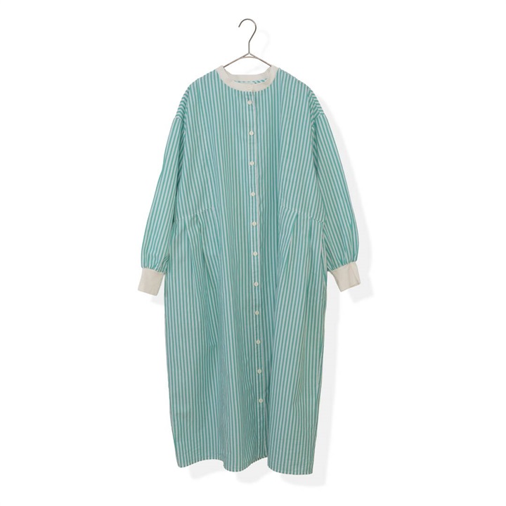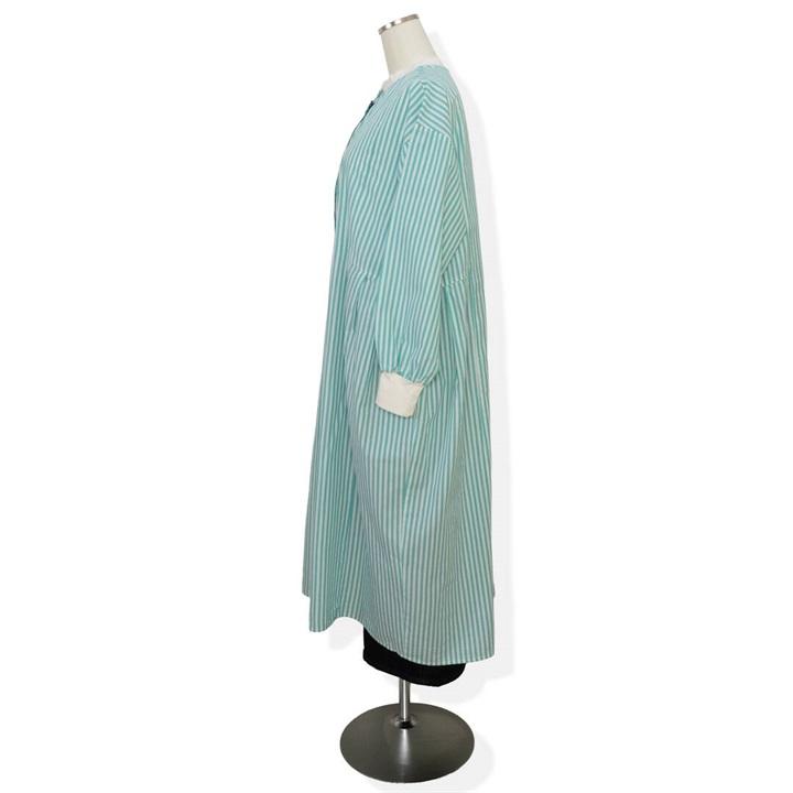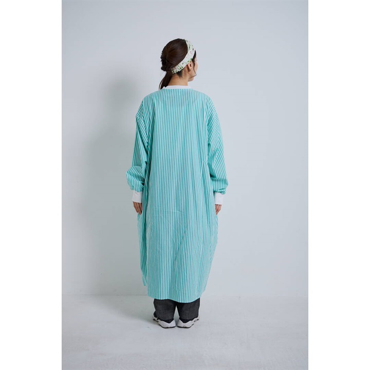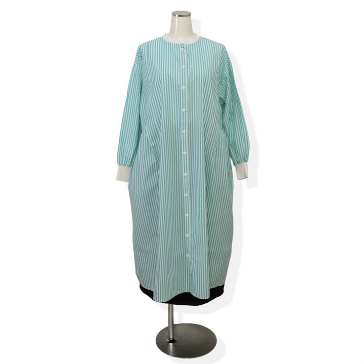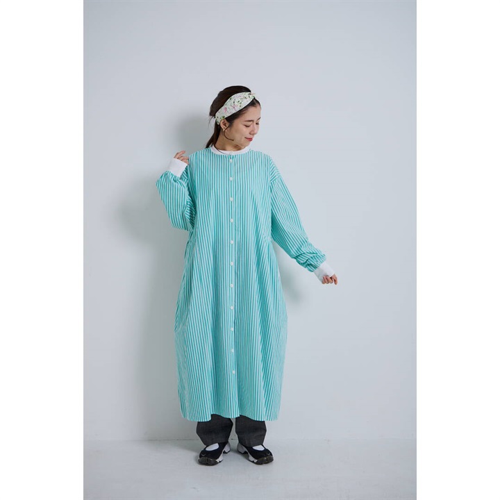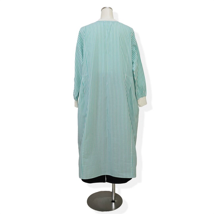 【YURK Geniet van】リブコンビ ストライプ 前開き 長袖ワンピース