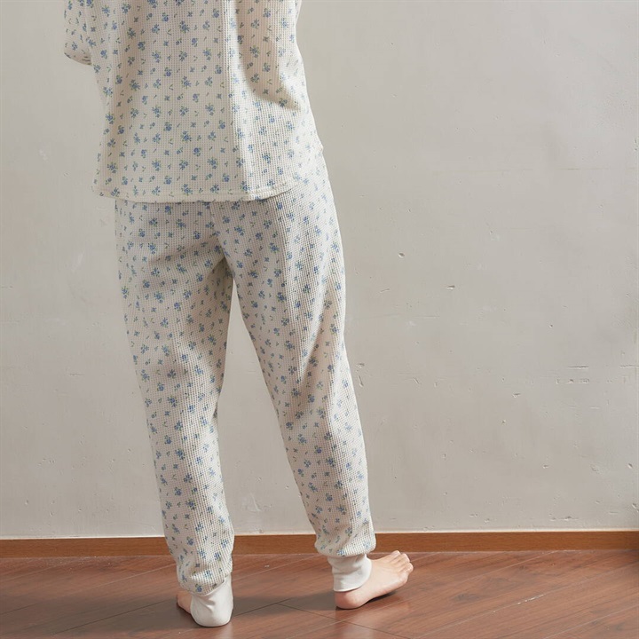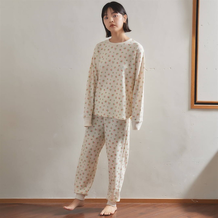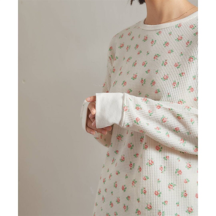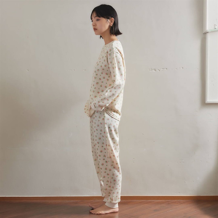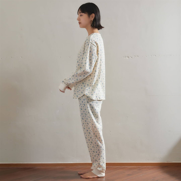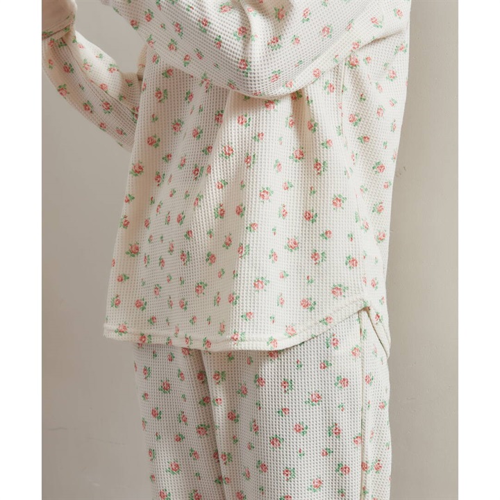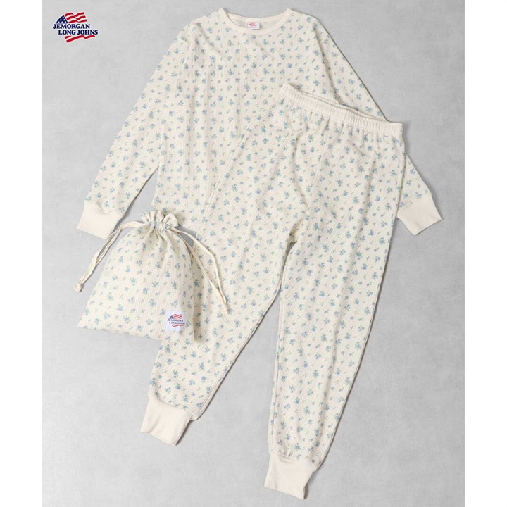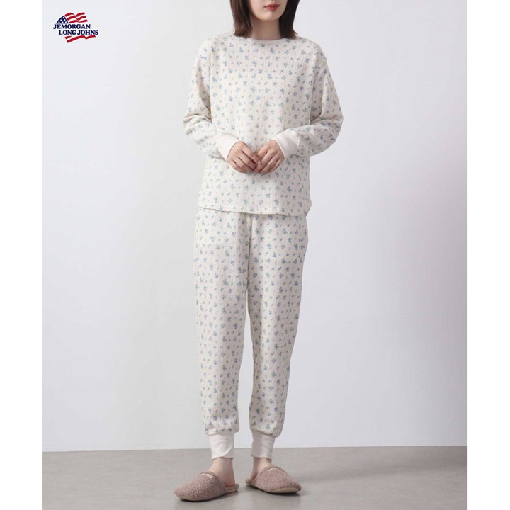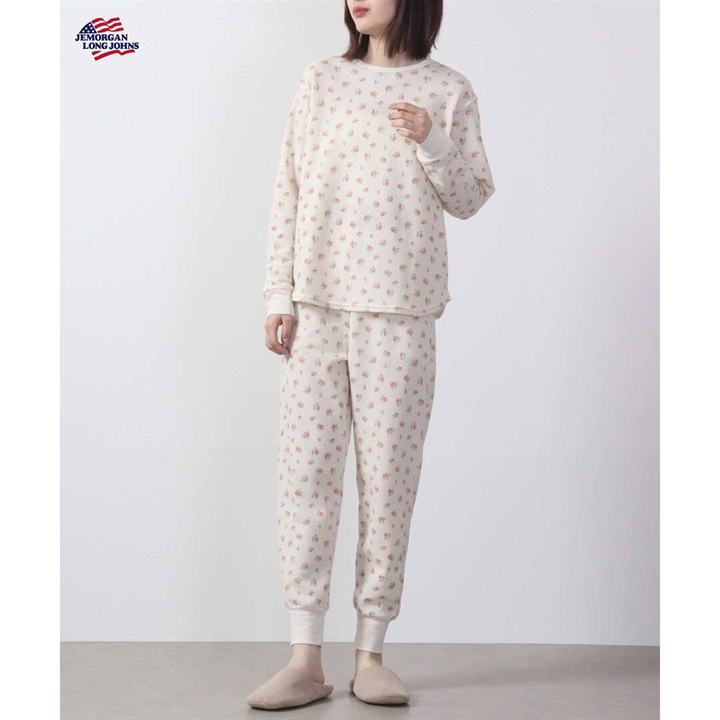 【JEMORGAN LONG JOHNS】ワッフル 花柄 ロングスリーブルームウェア3点セット