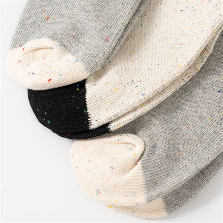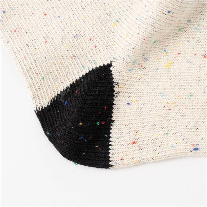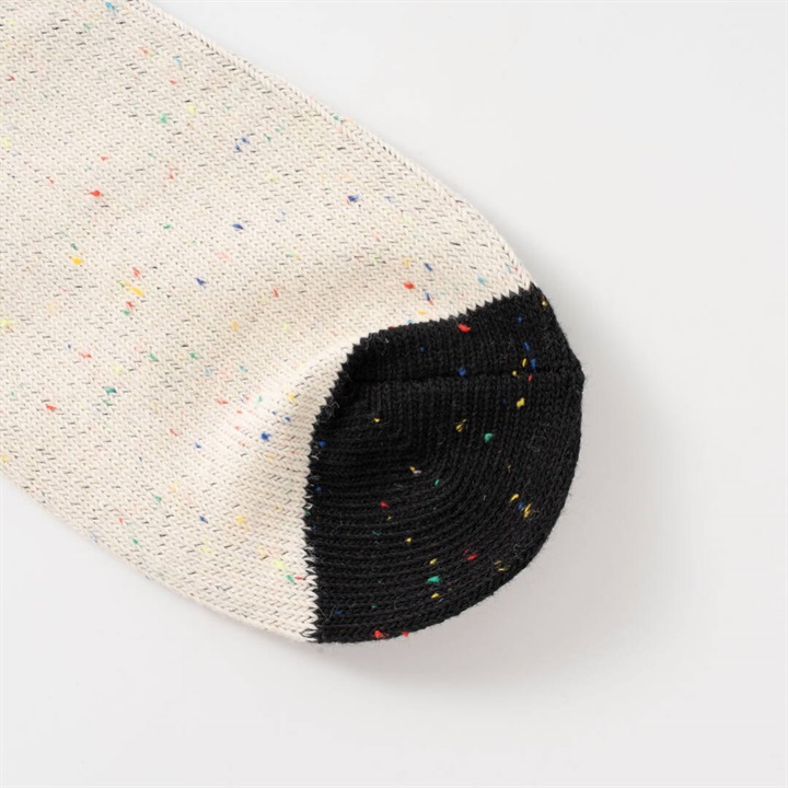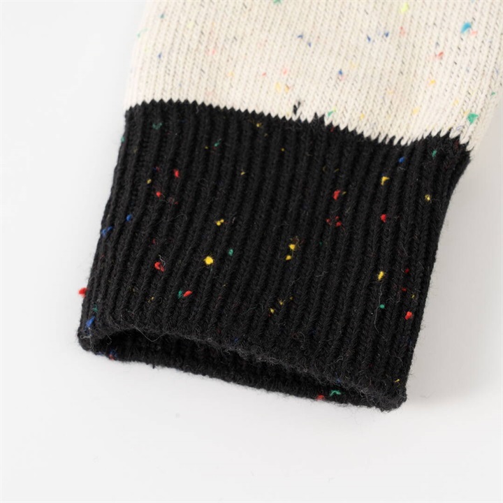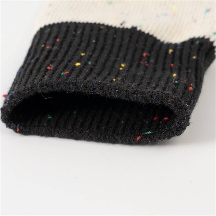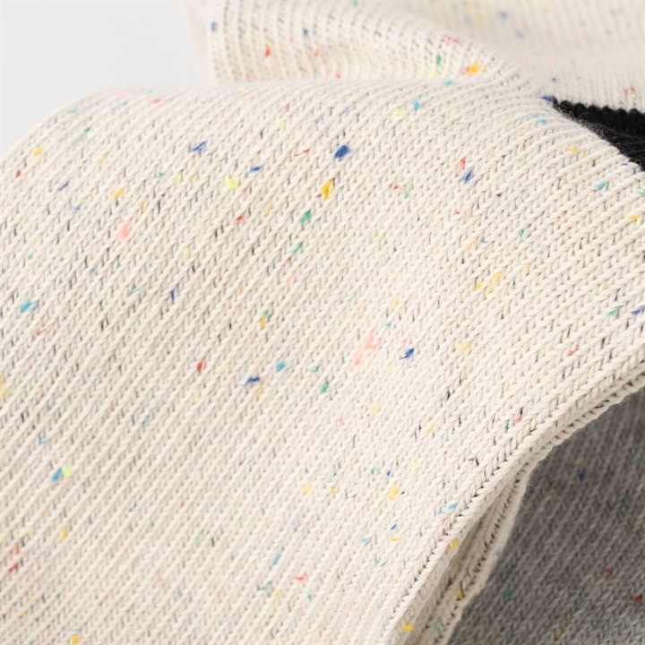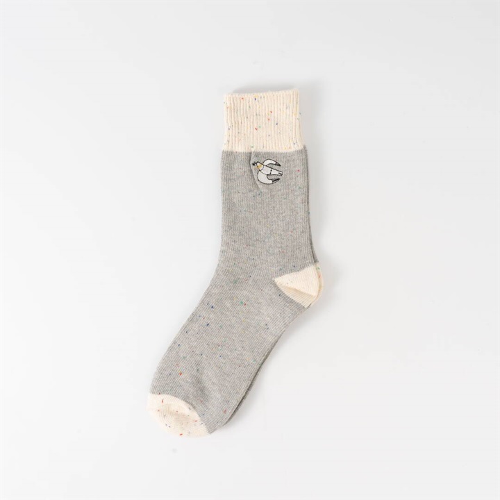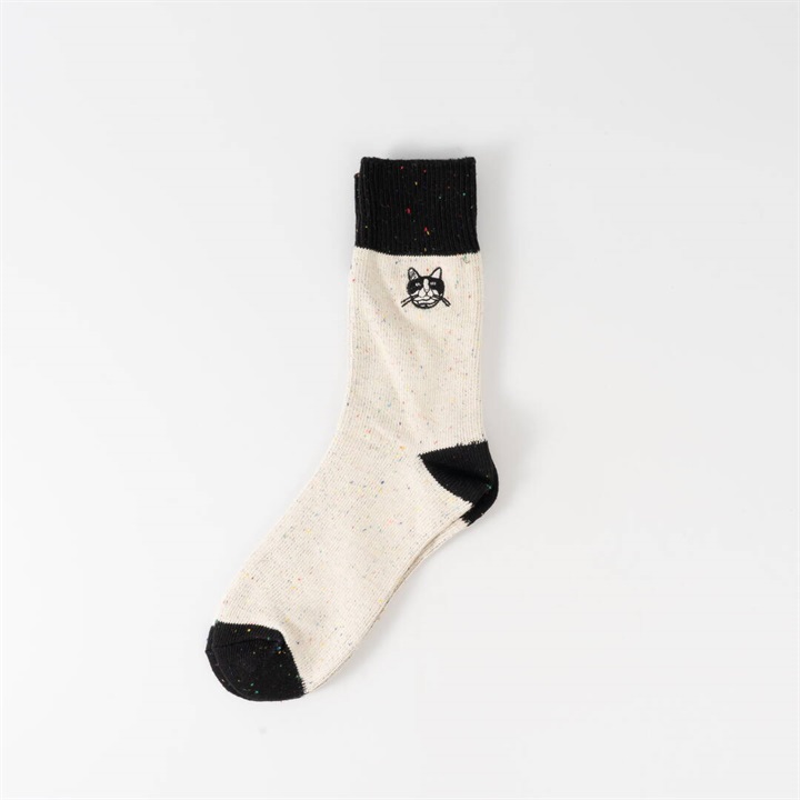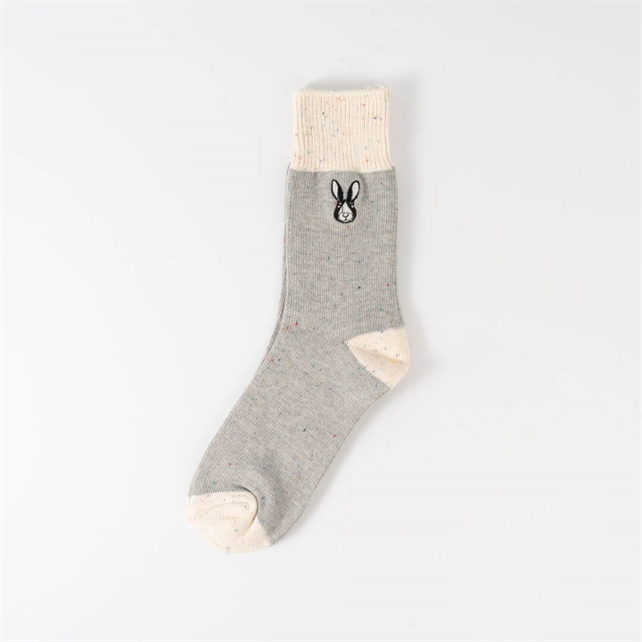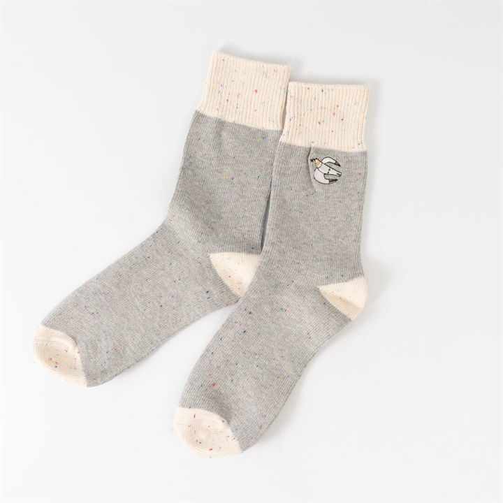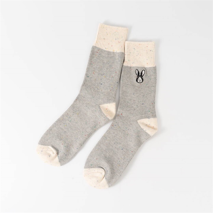 ワイヤーアートで作られた動物モチーフを、刺繍で表現したワンポイントデザイン。1年を通してお使いいただける綿ポリ素材が嬉しい!履き口がバイカラー仕様になっていて、コーディネートのアクセントになります。本体部分はネップ素材。よく見ると色んなカラーが混ざっていて可愛いです。 ▼プレゼント用のラッピングバッグはこちら