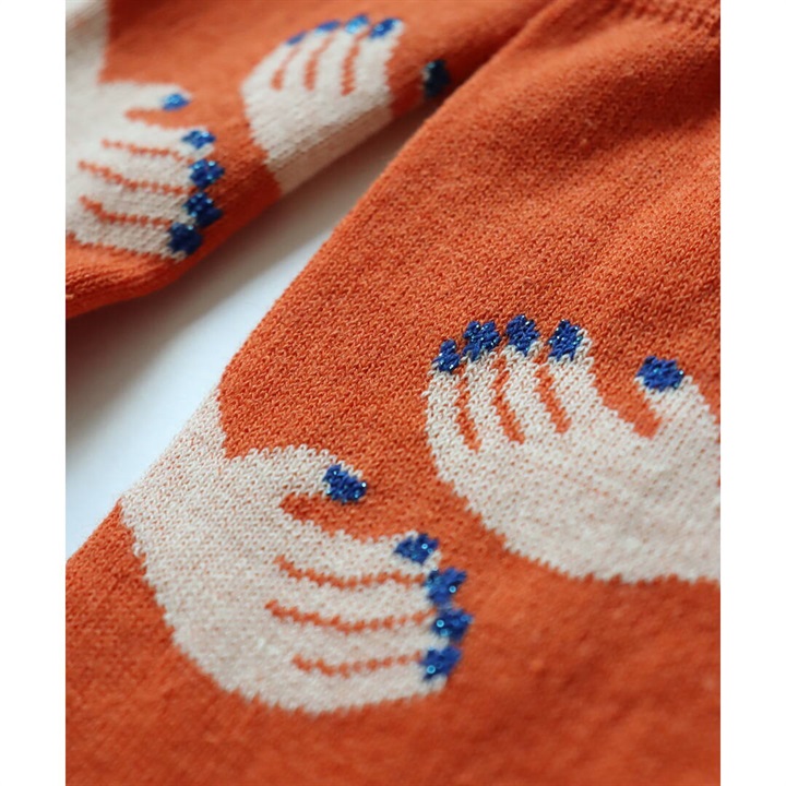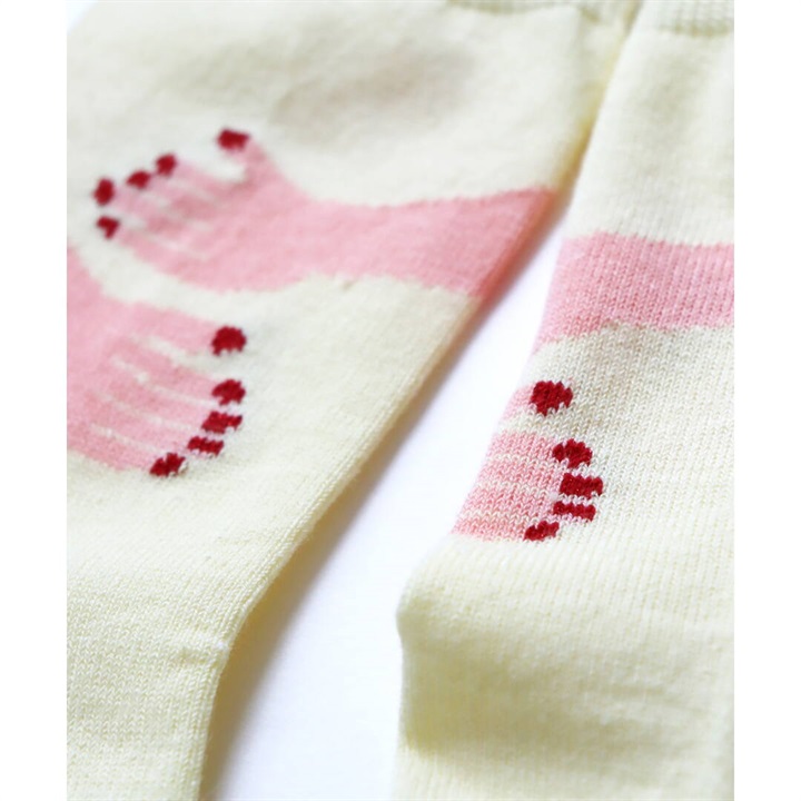 綿麻でサラリとした風合い。ギュッと足を抱きしめてくれるカインドネスな柄◎スニーカーにもサンダルにもばっちり!ユニークな絵柄とポップなカラーが楽しい一足です。