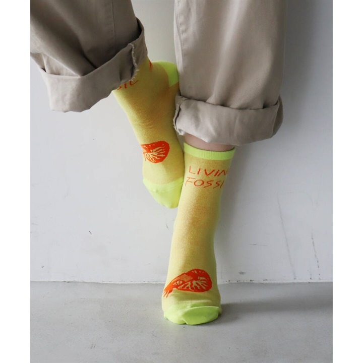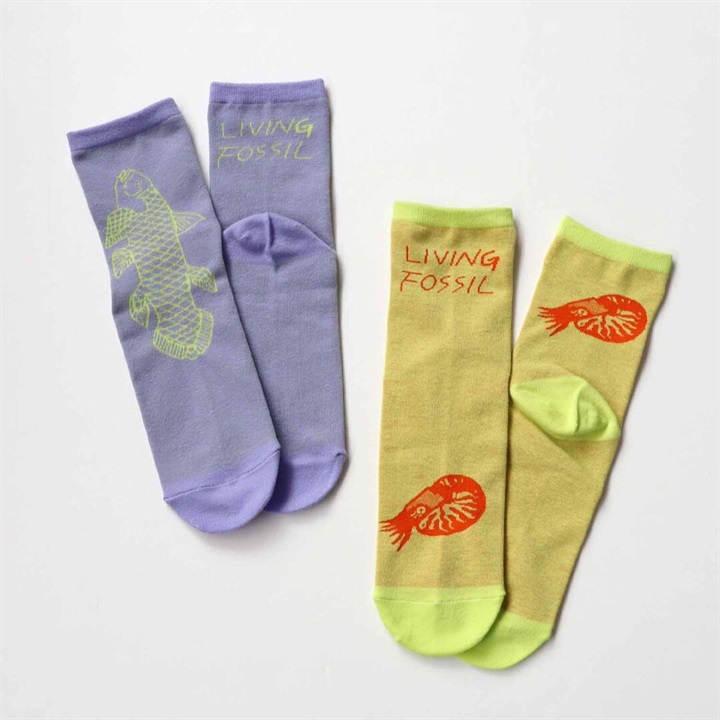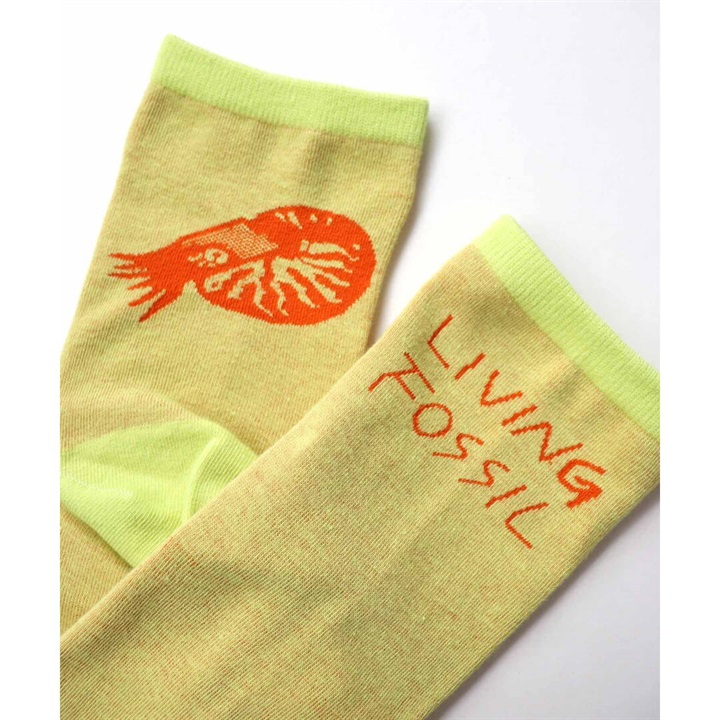 生きた化石“LIVING FOSSIL”主張しすぎないデザインが意外とデイリー使いにぴったり!シーラカンスとオウムガイのナイスガイなソックスです。