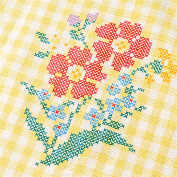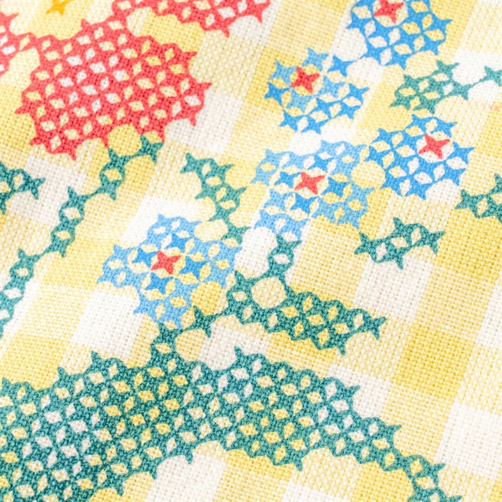 レトロだけどなんだか新鮮。やわらかコットンのギンガム生地にレトロかわいいプリントを載せました。
