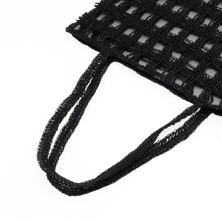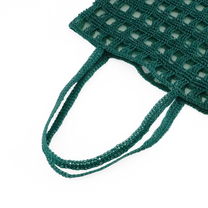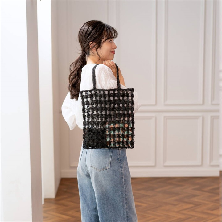 中身がこぼれ落ちない 透かしクロシェのトートバッグ。