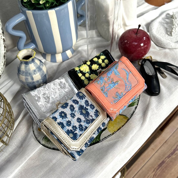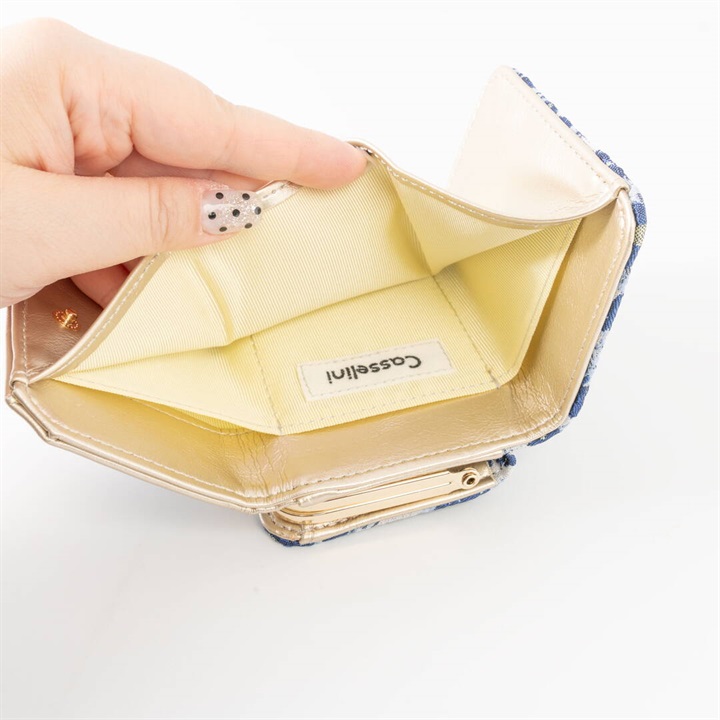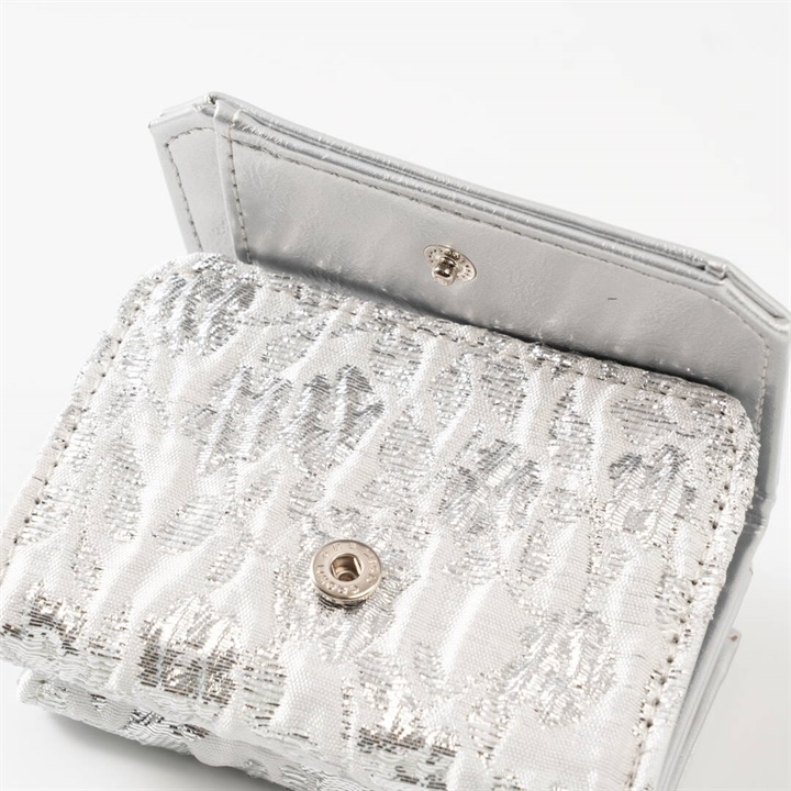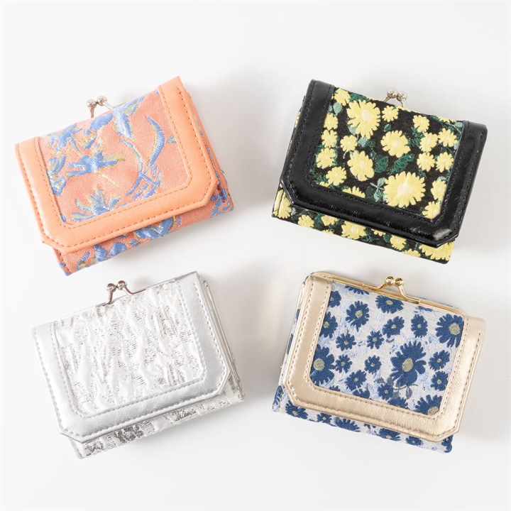 大人気のジャガードシリーズの新色が誕生しました。使いやすいコンパクトな三つ折りタイプで、お札とコインとカードをきっちり分けて収納できます。手にすっぽり収まるサイズ感のため、旅行の際やミニバッグでのご使用にもおすすめです。織りの素材は高級感があり幅広い年齢層に使いやすく、自分用だけでなくギフトとしても人気のアイテムです。