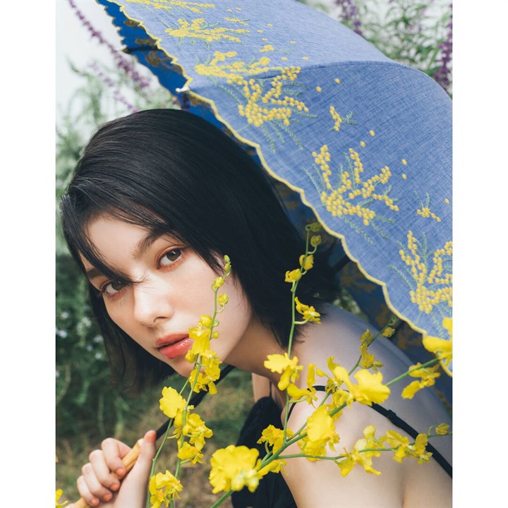ポンポンと可憐に咲くミモザが愛らしい。麻風の生地に映えるイエローがハッピー感満載。つば先のミモザ刺繍がポイント。ナチュラル感のある素材を使用し、上品な仕上がりです。急な雨にも対応できる晴雨兼用です。紫外線遮蔽率は90%以上で実用面も◎