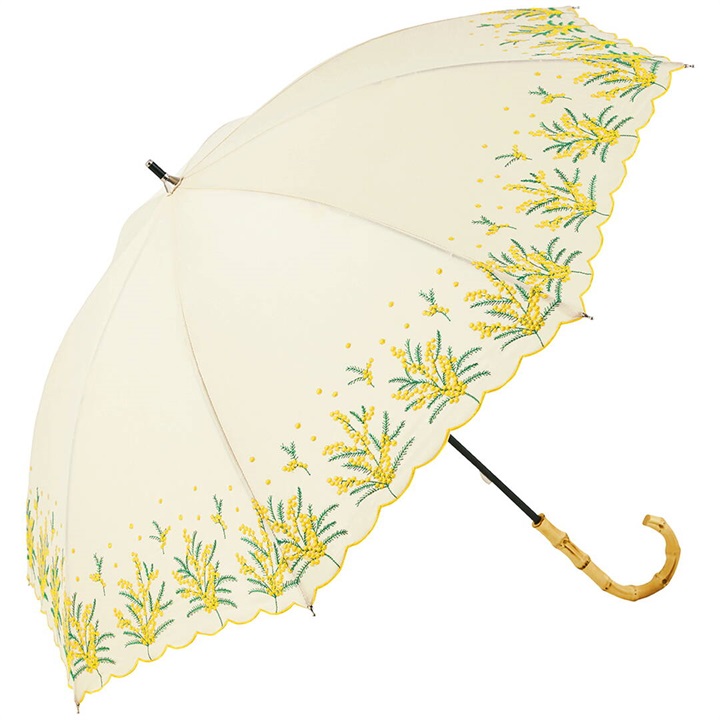 【because】ミモザ刺繍 晴雨兼用 長傘