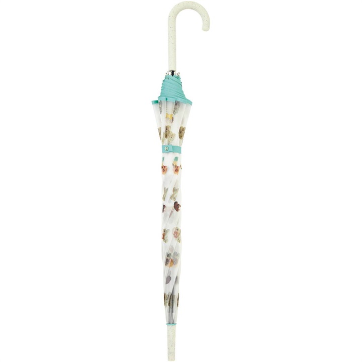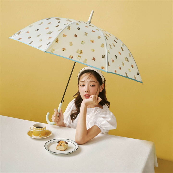 表情豊かな犬モチーフのお菓子たちがプリントされた愛くるしい雨傘です。