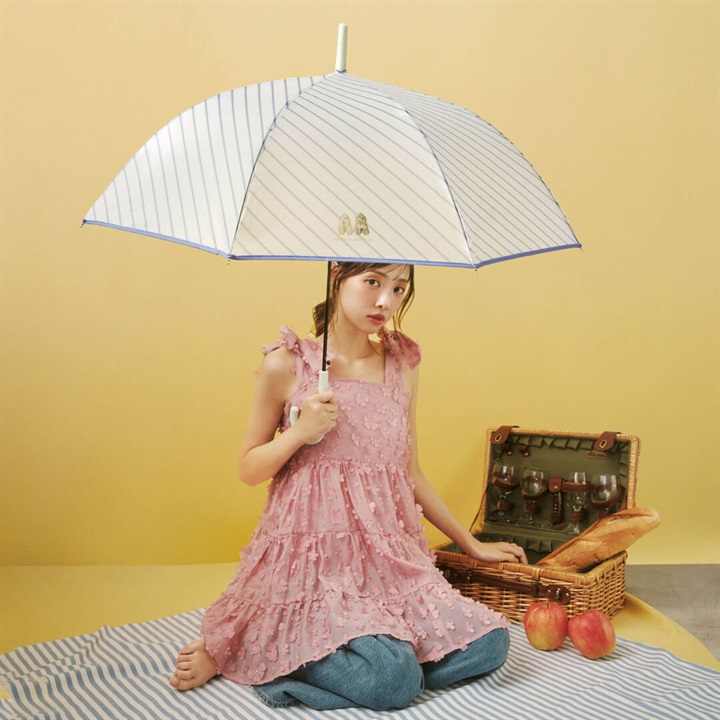 雨の日が待ち遠しい、やさしい雰囲気のビニール傘で、メゾンテリアのかわいいお菓子を主役にしながら、どなたでも使いやすいようなデザインに。