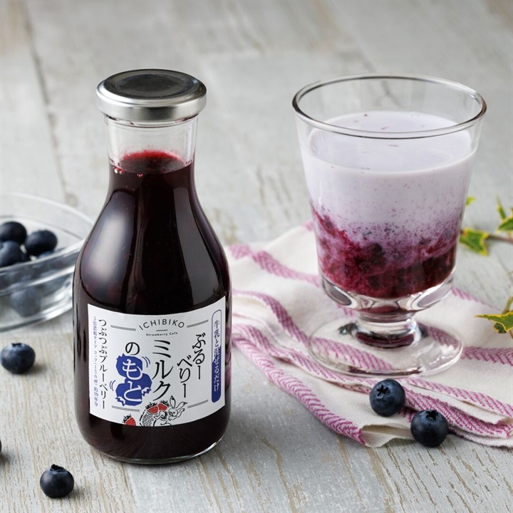 ICHIBIKOのミルクのもとシリーズの特徴である大きめ果実として、たっぷりのつぶつぶブルーベリーが入っており、ブルーベリーの素材感が楽しめます。