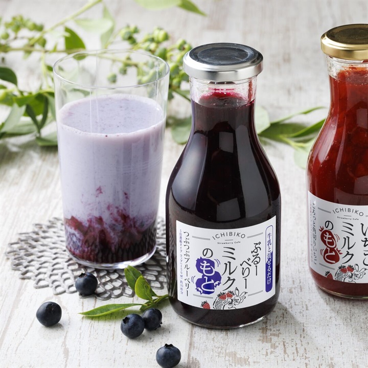 ご自宅で牛乳と混ぜるだけで手軽においしいブルーベリーミルクが出来上がる、濃縮タイプの“もと”です。