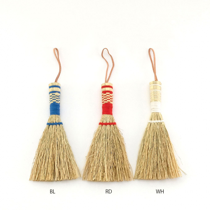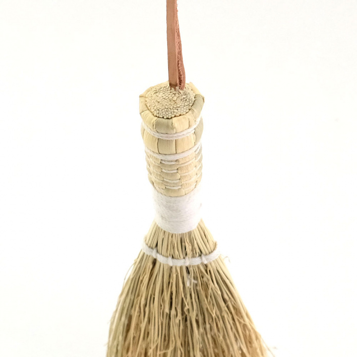 ナチュラルなホウキに配色のコットン糸が目を引くデザインは、ダストパンと一緒に吊るして飾るだけでインテリアとしてもお楽しみいただけます。