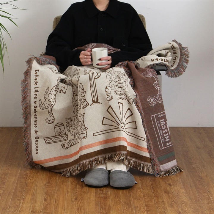 ソファやベッドにサラッと掛けて、膝掛けとして、鮮やかな色合いをいかしてアートとして壁面への装飾として。