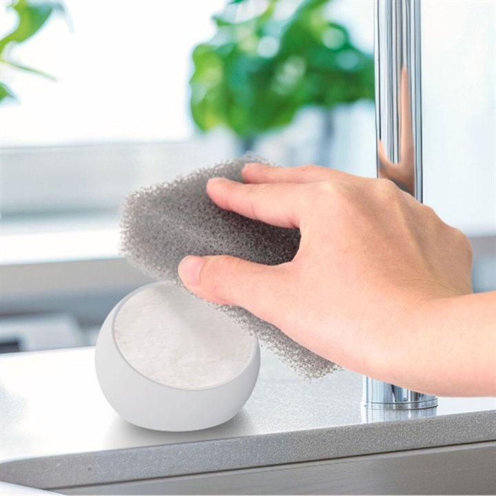 軽くタッチするだけで高い洗浄力を発揮する固形洗剤が、毎日の食器洗いを手軽で快適なものに。