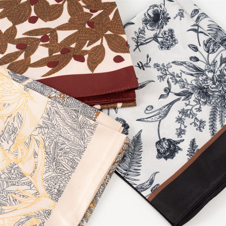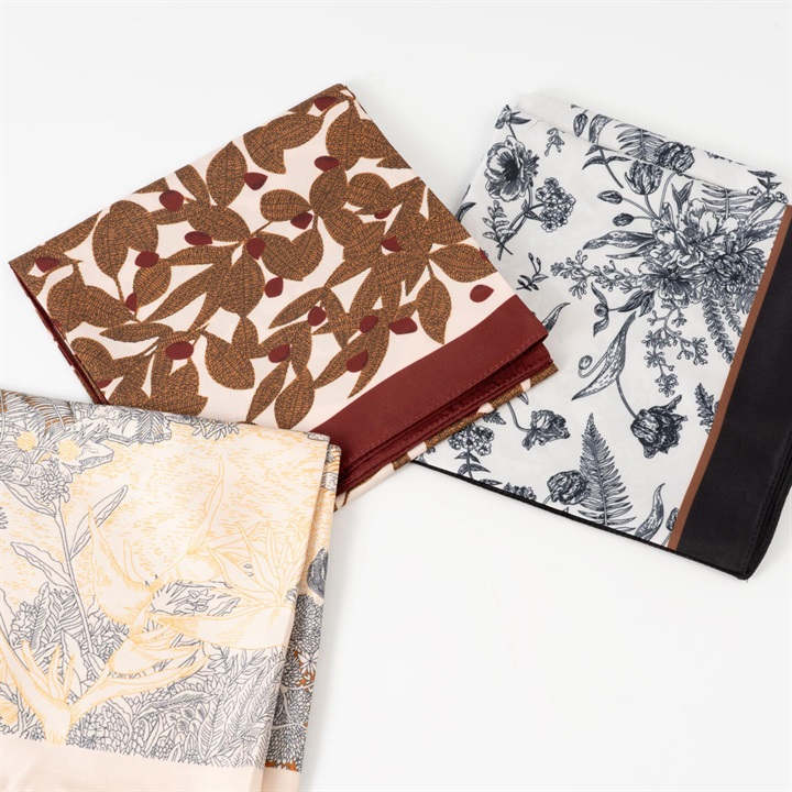 シワになりにくく、しなやかで滑らかな風合いのツイルプリントスカーフ。パンツに巻くと巻きスカート風や、シンプルなTシャツの上から巻くだけでビスチェ風にも着こなせます。巻き方によって雰囲気が変わる大判スカーフ。一枚あると重宝するアイテムです。 ▼プレゼント用のラッピングバッグはこちら