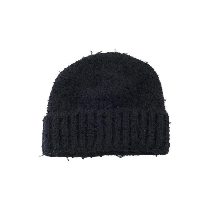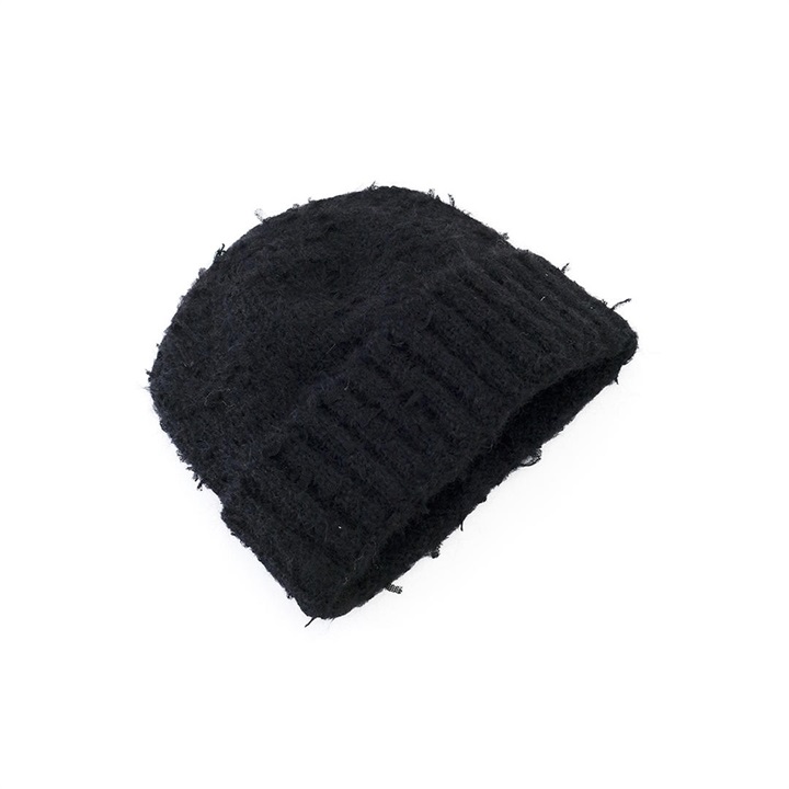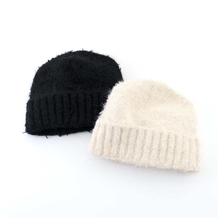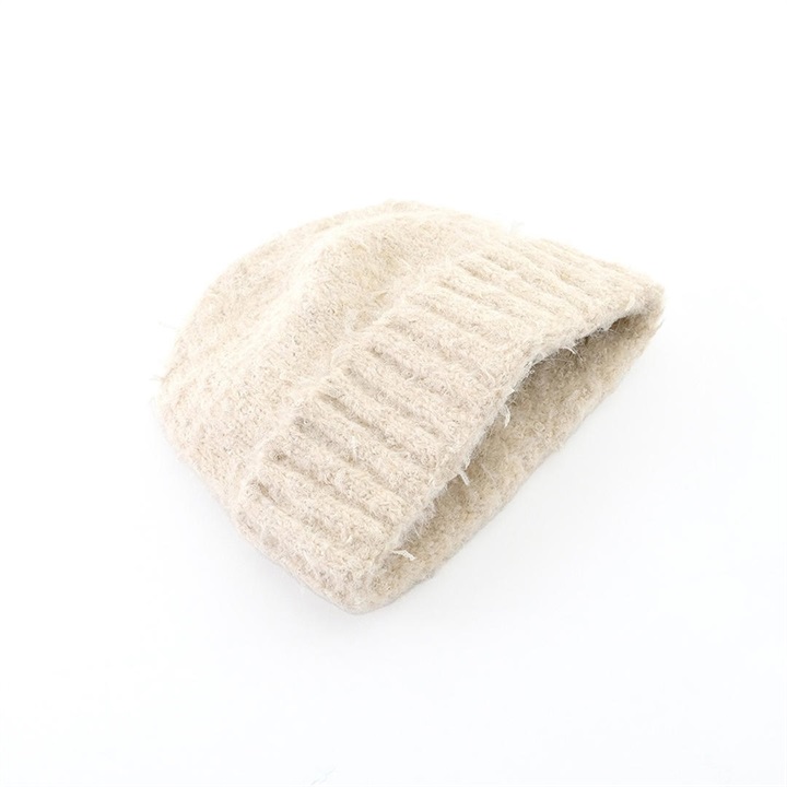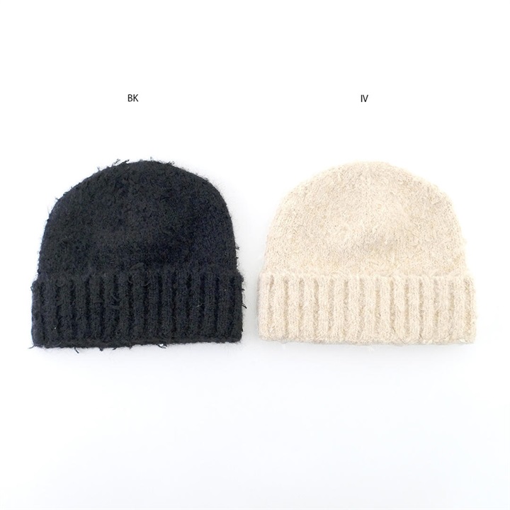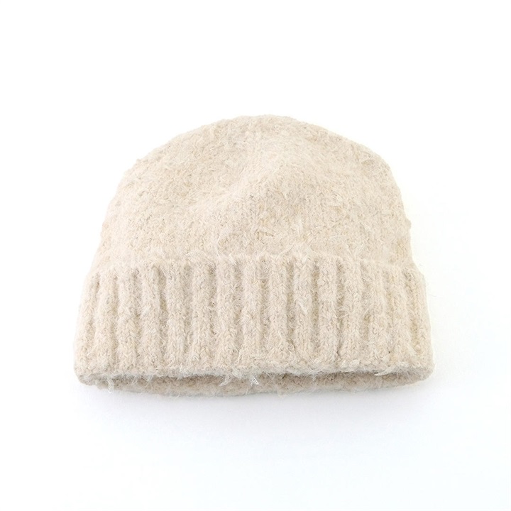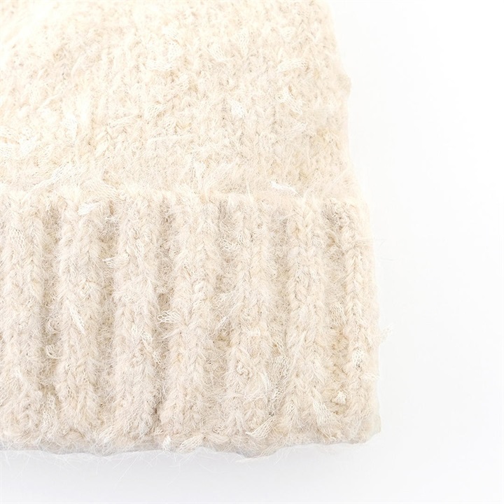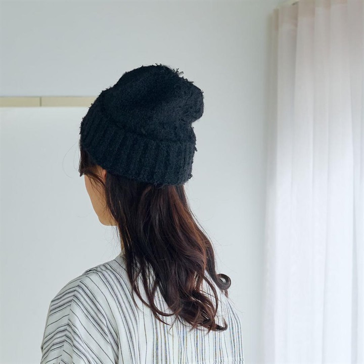 存在感のあるリボンヤーン素材を使用し、ツイード調に仕上げた上品なニットキャップ。