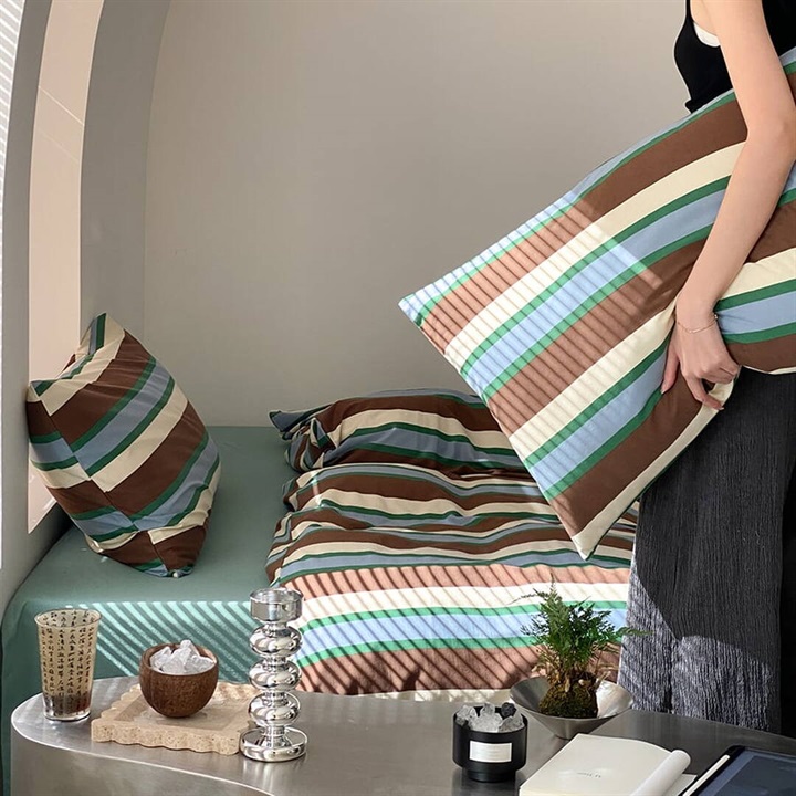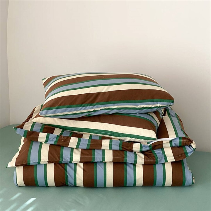 「ツインストライプ」は、洗練されたデザインで、シンプルながらも存在感を放つ寝具カバーセットです。
