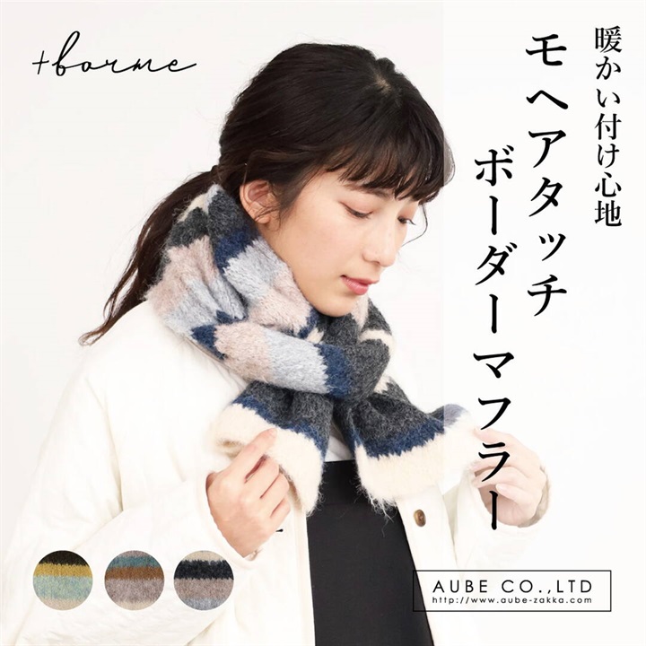 【+borme】モヘアタッチボーダーマフラー