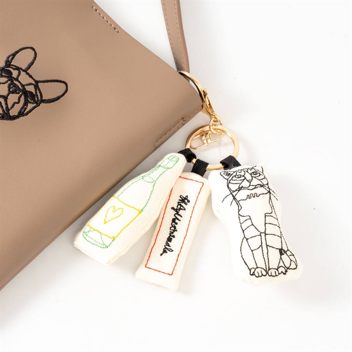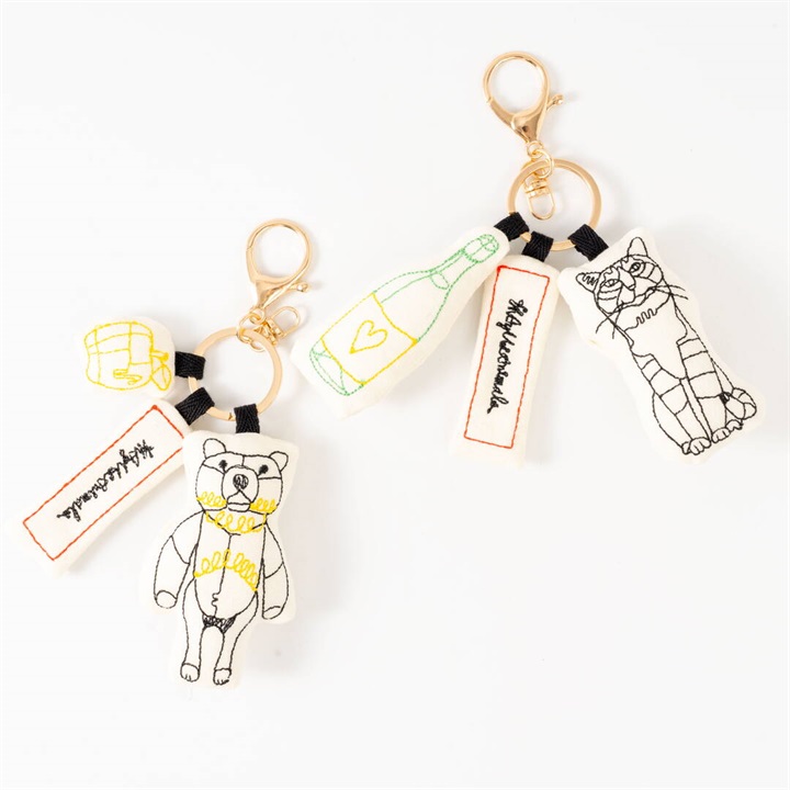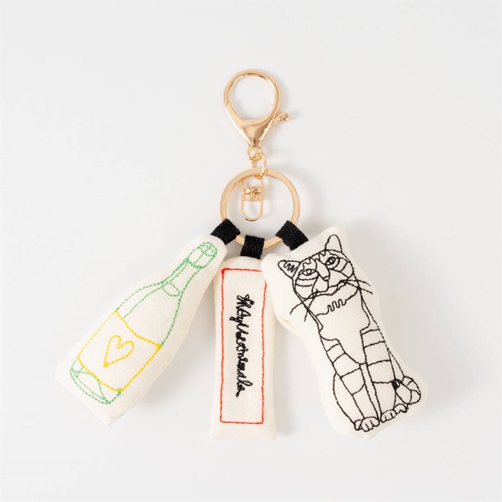 - ニャンパーニュ:チャーム全長約14cm、本体長さボトル約8cm、プレート約6.5cm、ネコ約7.5cm