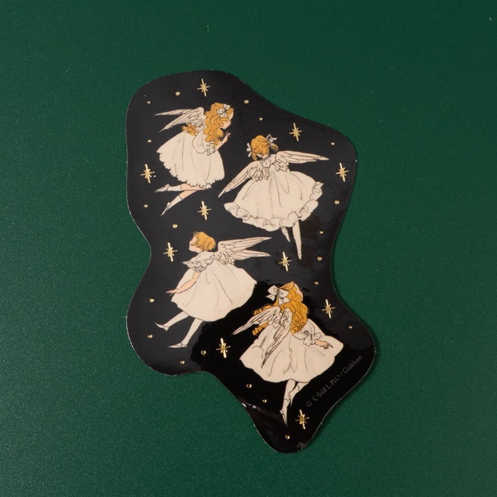 懐かしく、温かみのあるイラストが人気のイラストレーターくらはしれいさんの文具シリーズ。天使シリーズの一筆箋とステッカーのセット商品です。きらめく天使たちのかわいいイラストに癒されます。ちょっとしたメッセージを送るのにちょうどいい一筆箋は中の柄も可愛いデザインです。一筆箋の表紙、ステッカーにも箔が散りばめられていて見ているだけで華やかな気持ちになります。<セット内容>一筆箋+ステッカー1枚