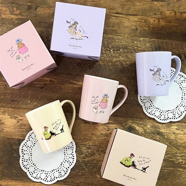 懐かしく、温かみのあるイラストが人気のイラストレーターくらはしれいさんのマグカップ。レトロなデザインが海外絵本のようで心ときめきます。置いておくだけでもキュートなデザインで、贈り物にもぴったり。底面には、くらはしれいさんのロゴ入りです。