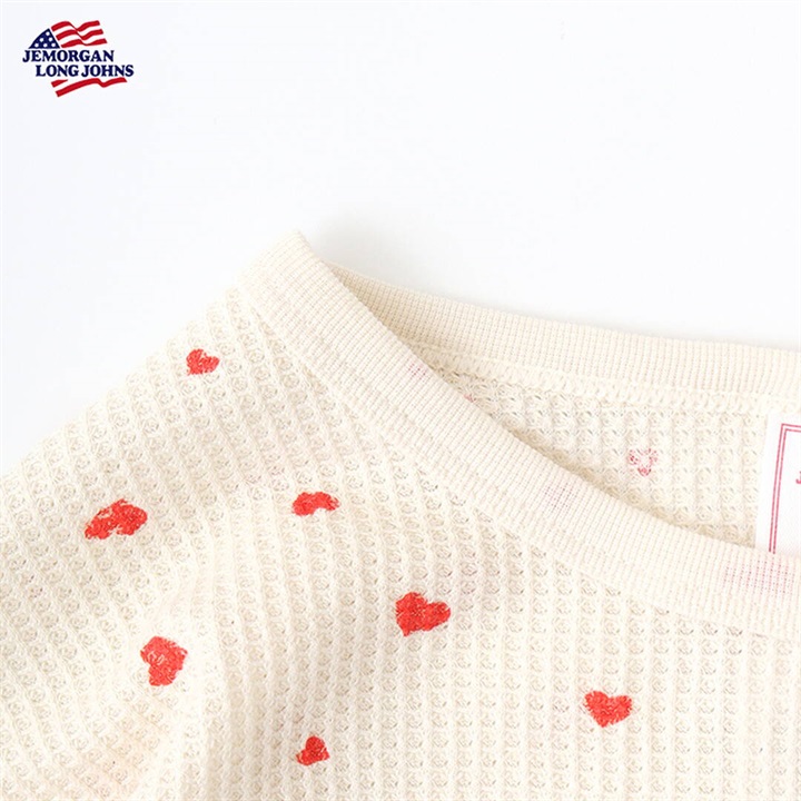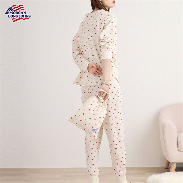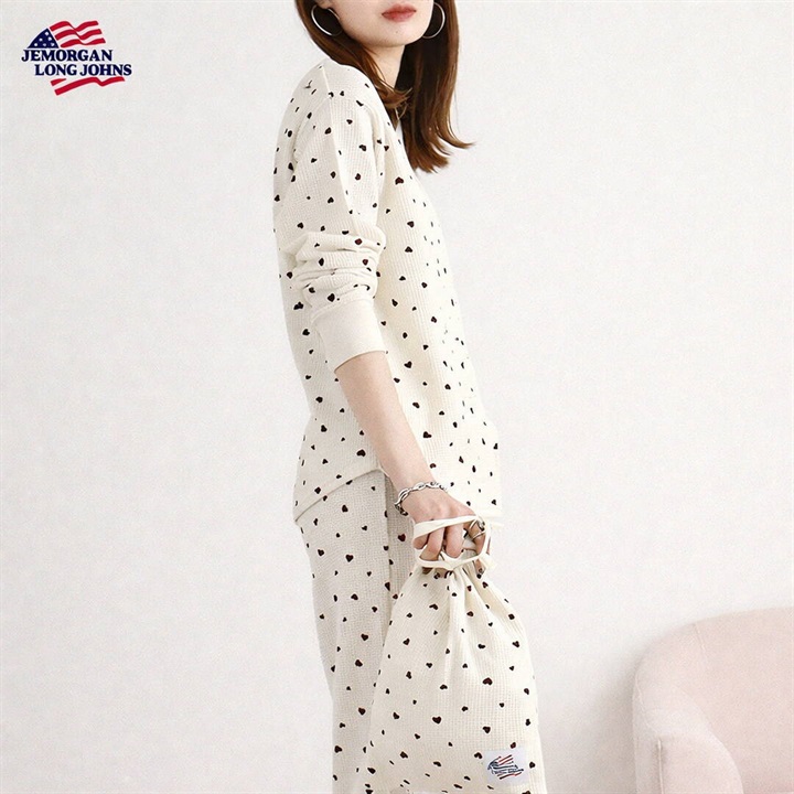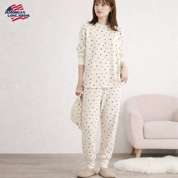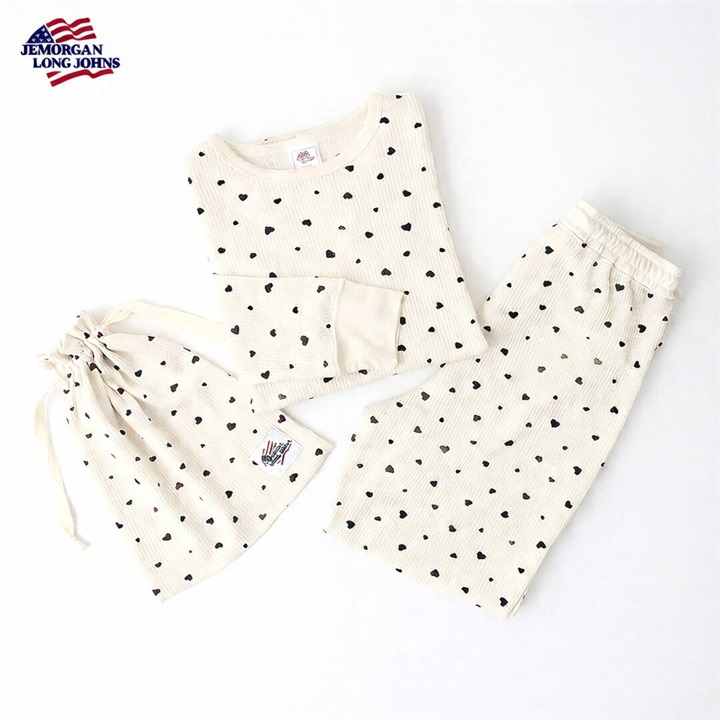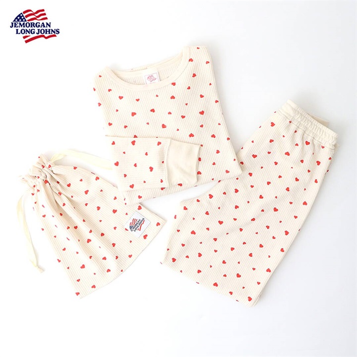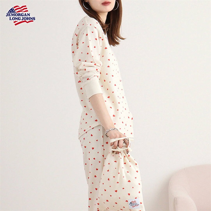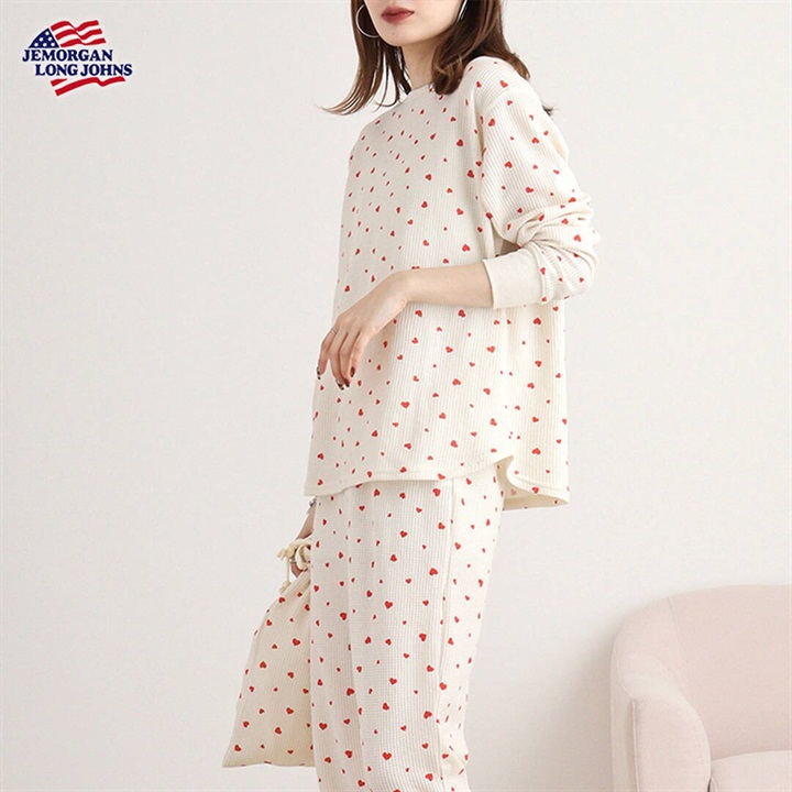 【JEMORGAN LONG JOHNS】ワッフル ハート柄 ロングスリーブルームウェア3点セット