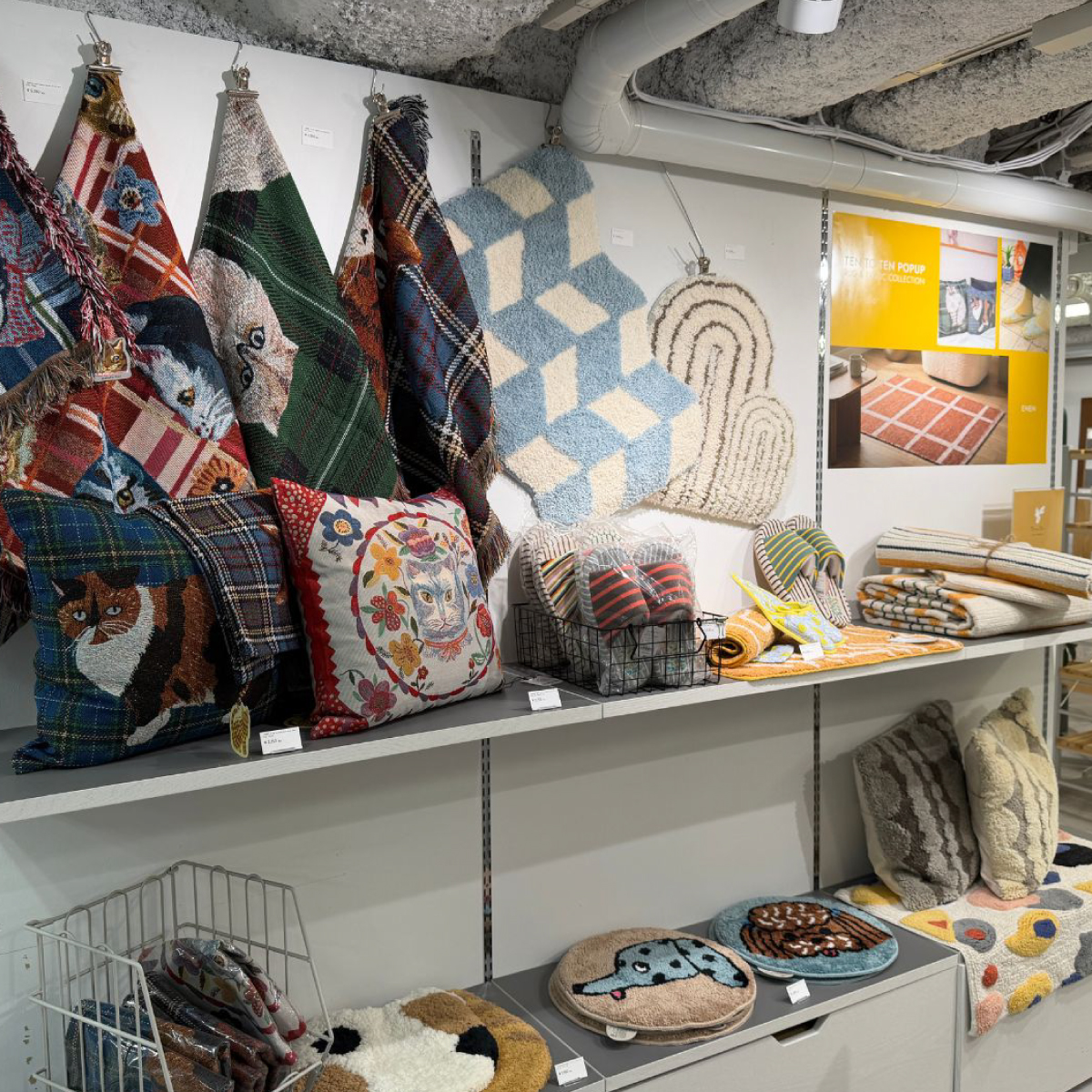 通常は、オンラインストアでしか見ることができない、てんとてんオリジナルのラグからクッションカバーを中心に、