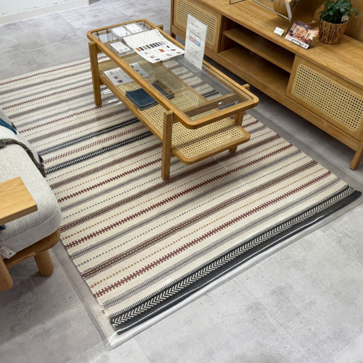 イチオシのオリジナル商品は、インドの熟練した職人がひとつひとつ手織りで仕上げた、平織りのラグ&マット。
